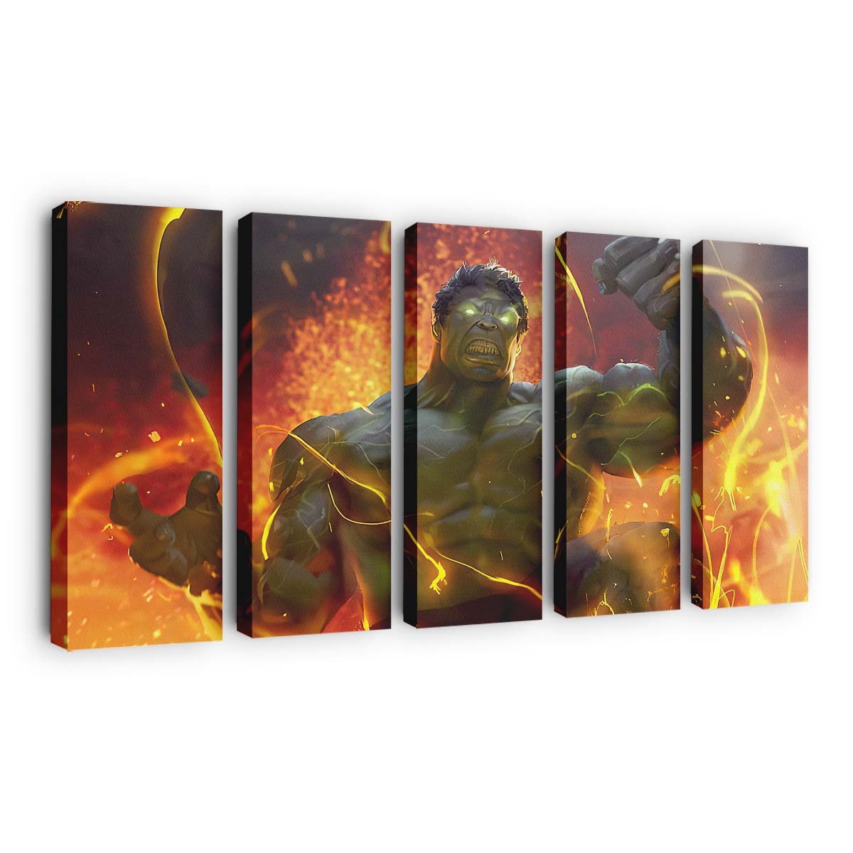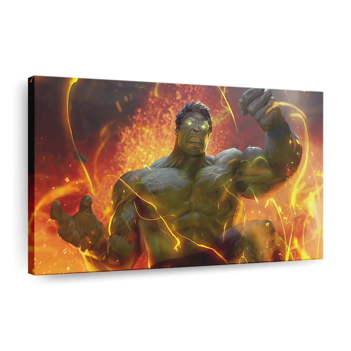 Bringen Sie die unbändige Kraft von Hulk direkt in Ihr Zuhause! Dieses dynamische Leinwandbild fängt die rohe Energie und Wucht des grünen Avengers auf eindrucksvolle Weise ein – ein echtes Muss für jeden Marvel-Fan.
