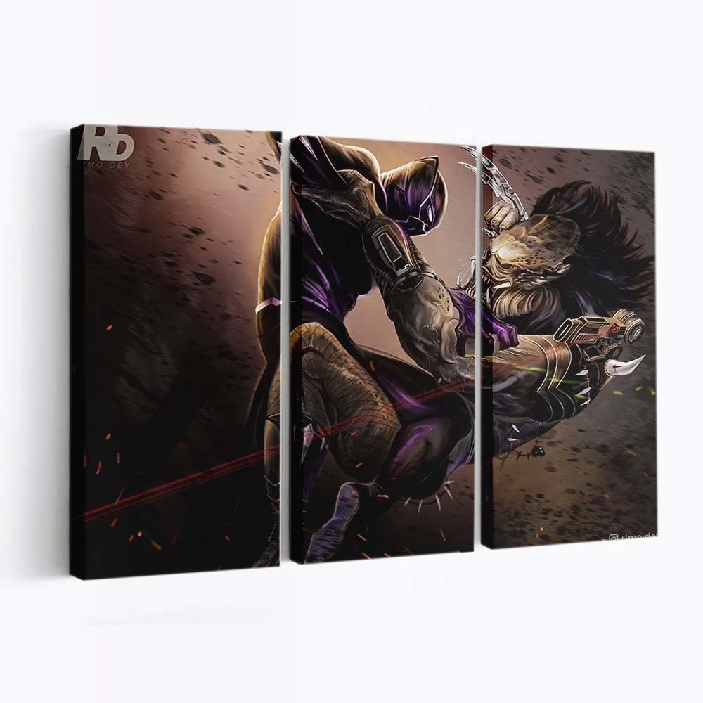 Dieses Leinwandbild ist mehr als nur Wanddeko – es ist ein echtes Statement für Ihre Leidenschaft zu Black Panther gegen Predator Illustration Leinwandbild – Marvel Wandbild .