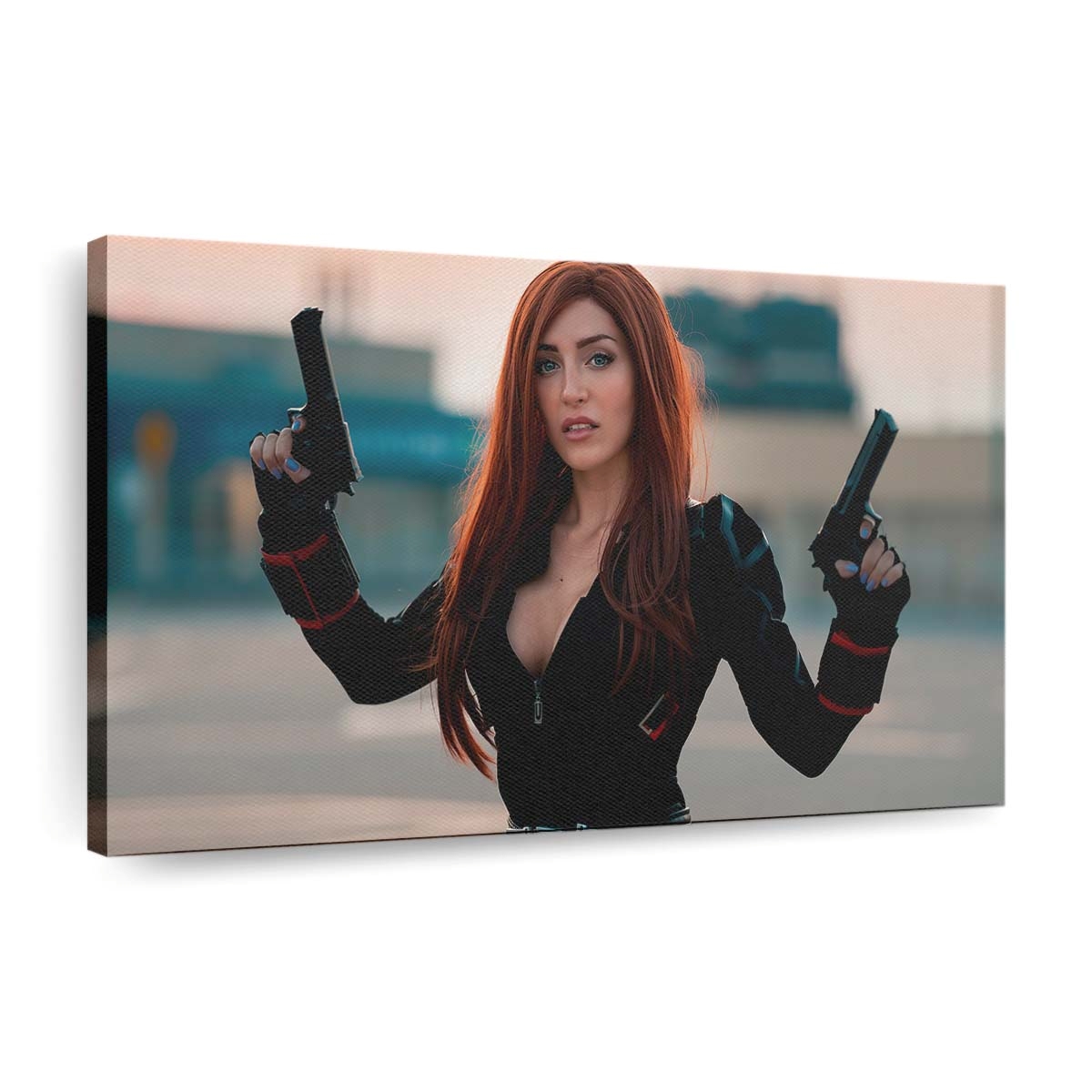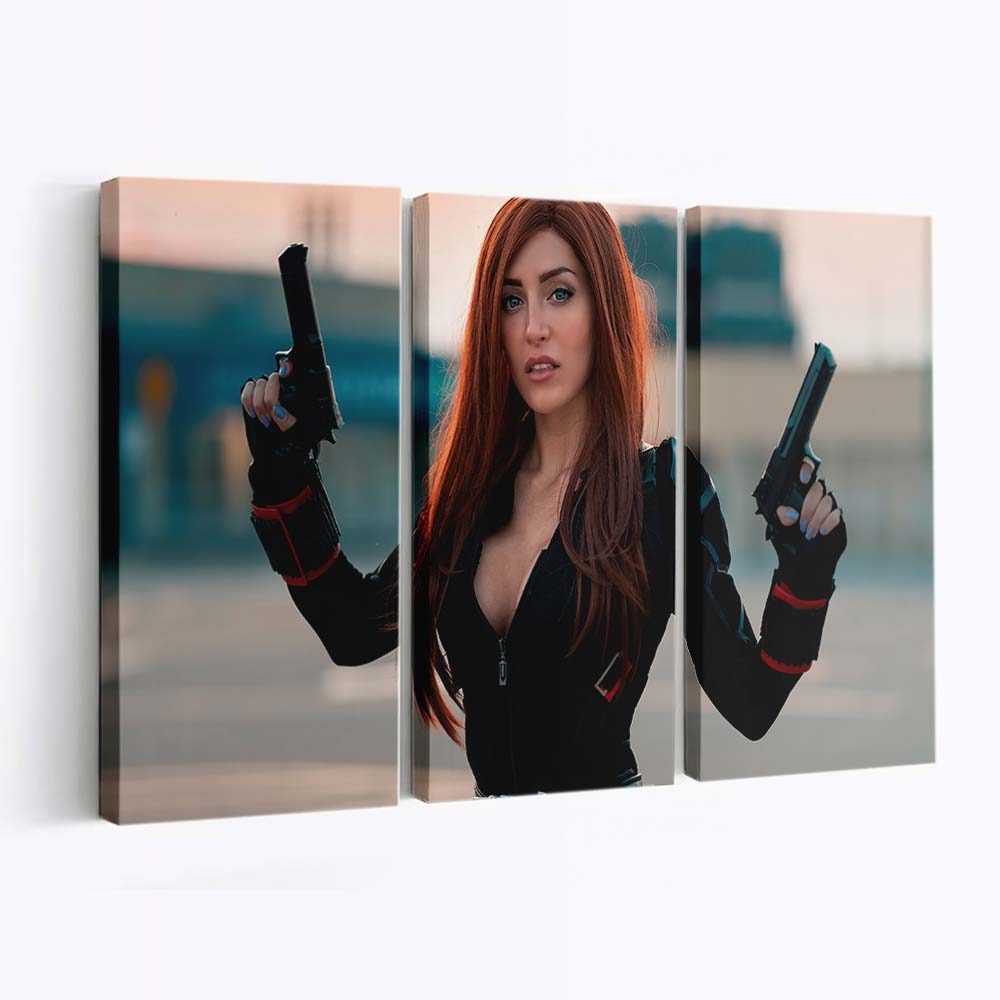 Dieses Leinwandbild ist mehr als Wanddeko – es ist ein Stück Marvel-Geschichte und ein kraftvolles Symbol für die unerschütterliche Stärke von Black Widow With Guns Leinwandbild Marvel Wandbild .