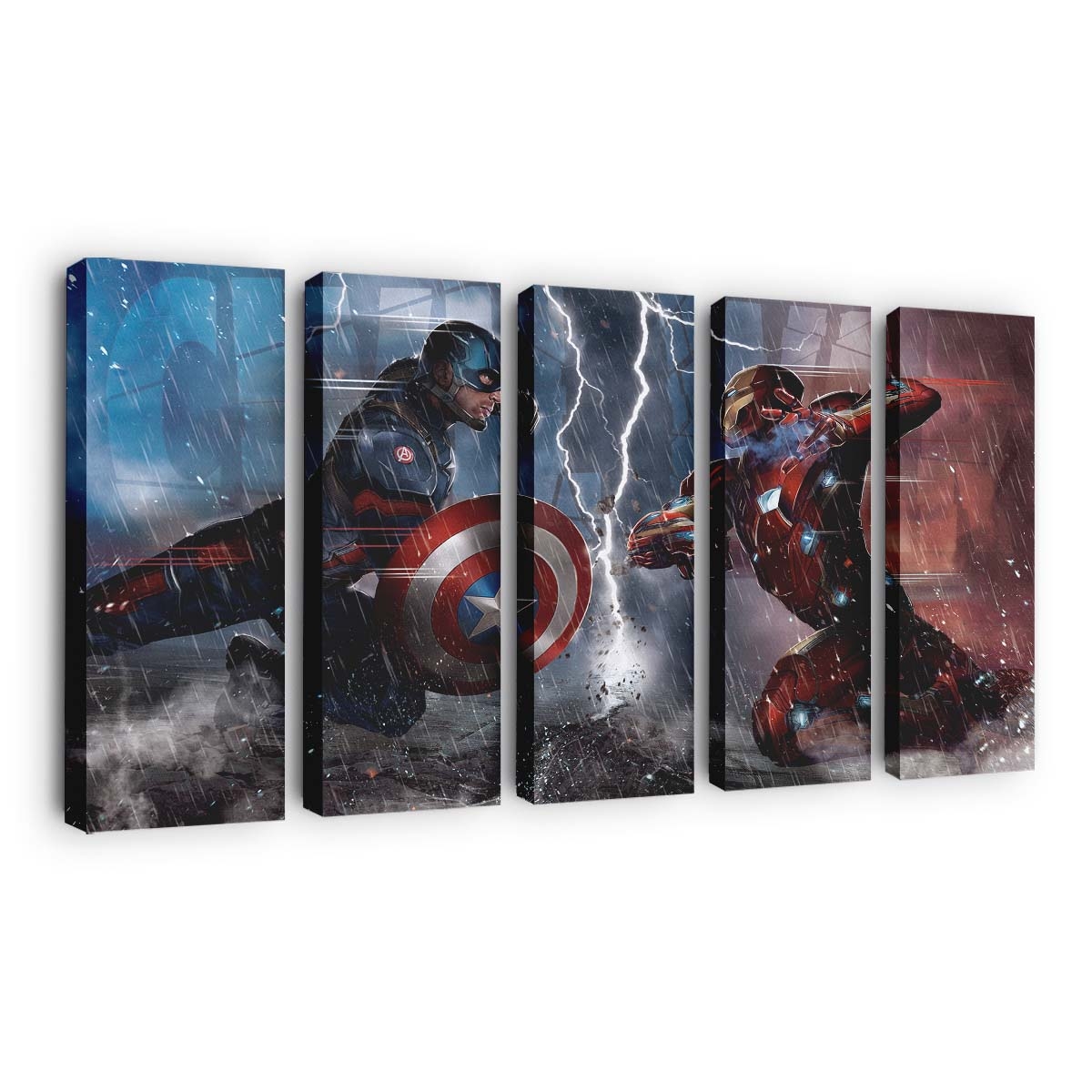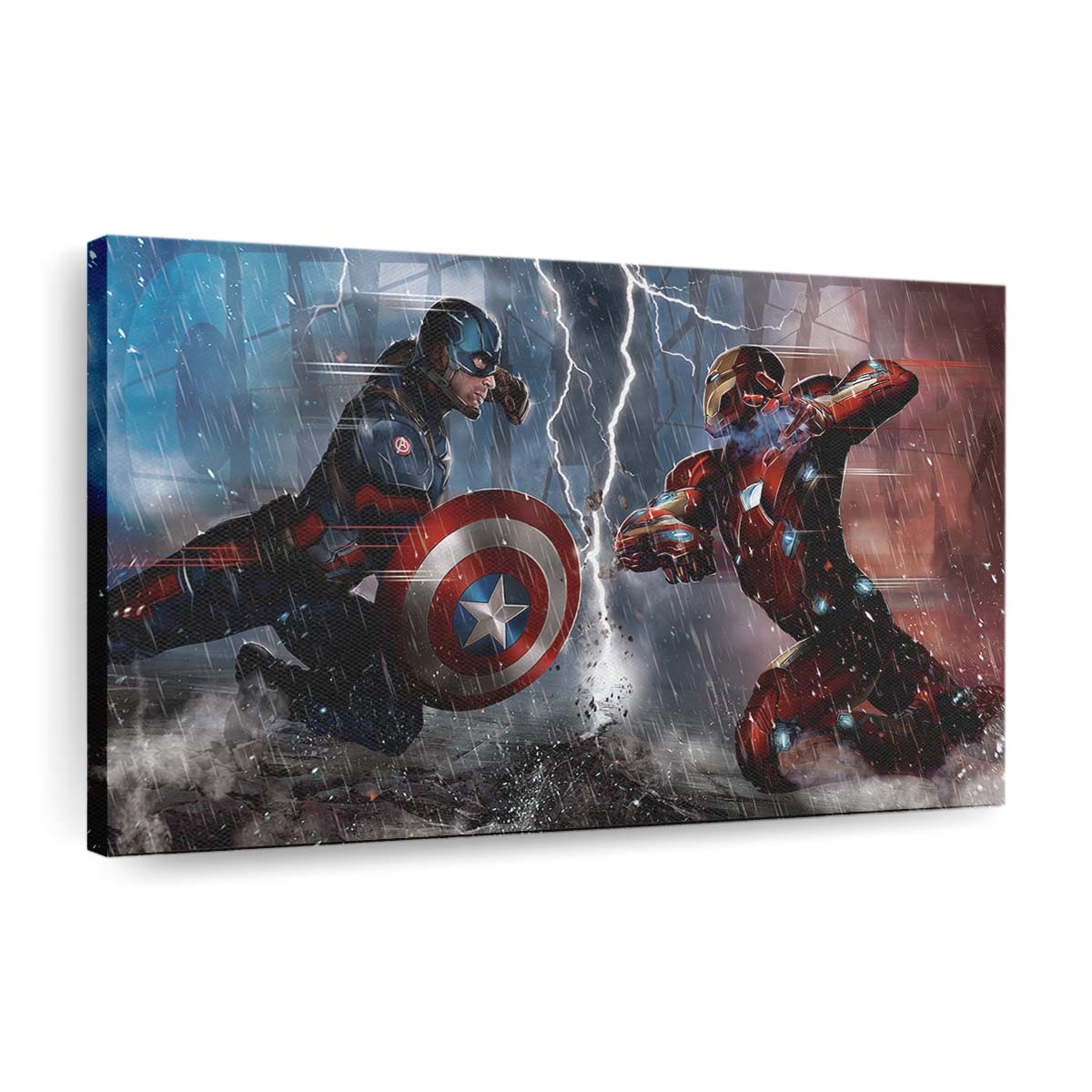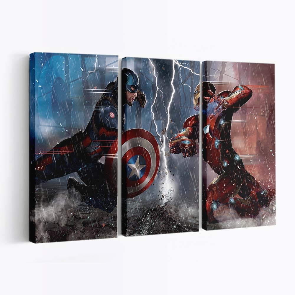 Ein Highlight für Marvel- und Captain Amerika gegen Eisenmann Comic Leinwandbild – Marvel Wanddeko-Fans!
