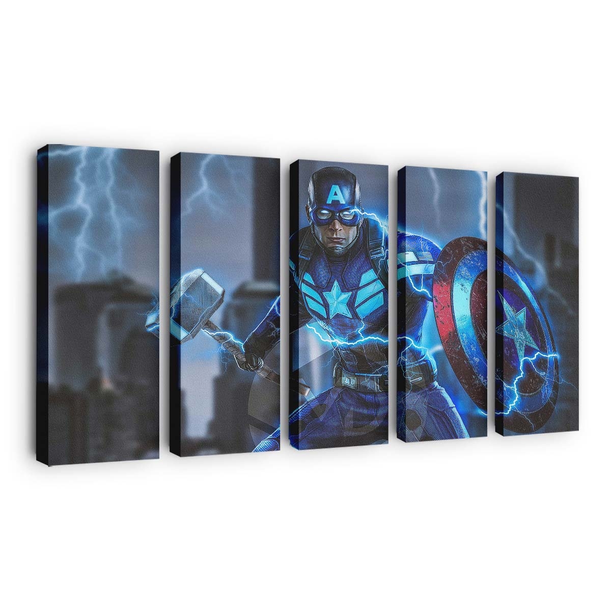 Erleben Sie die legendäre Welt von Captain Amerika Mjolnir Avengers Endgame 2019 2 Leinwandbild – Marvel Wanddeko in einer einzigartigen visuellen Darstellung. Dieses exklusive Leinwandbild fängt die heroische Ausstrahlung und den unerschütterlichen Geist dieser Marvel-Ikone ein – ein Symbol für Mut, Ehre und Gerechtigkeit.