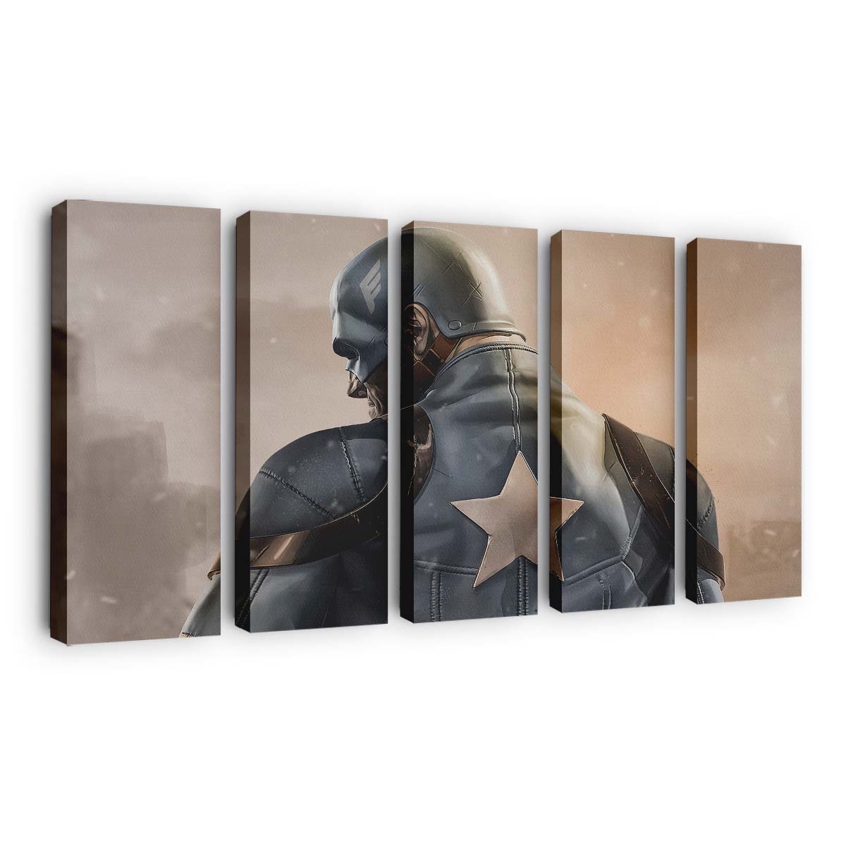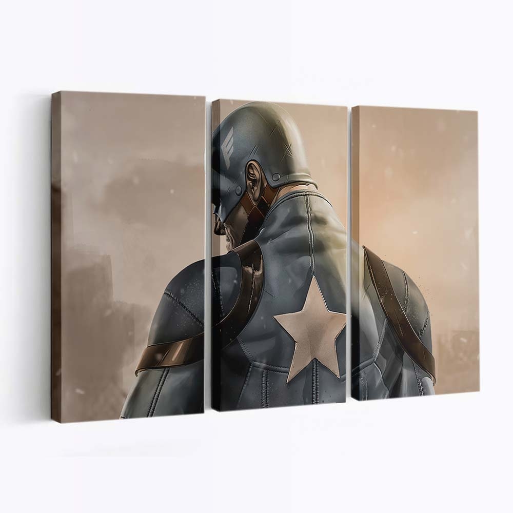 - Ikonisches Marvel-Design: Eine kraftvolle Darstellung von Captain Auf Dem Schlachtfeld Leinwandbild – Marvel Wanddeko – Symbol für Stärke und Hoffnung.