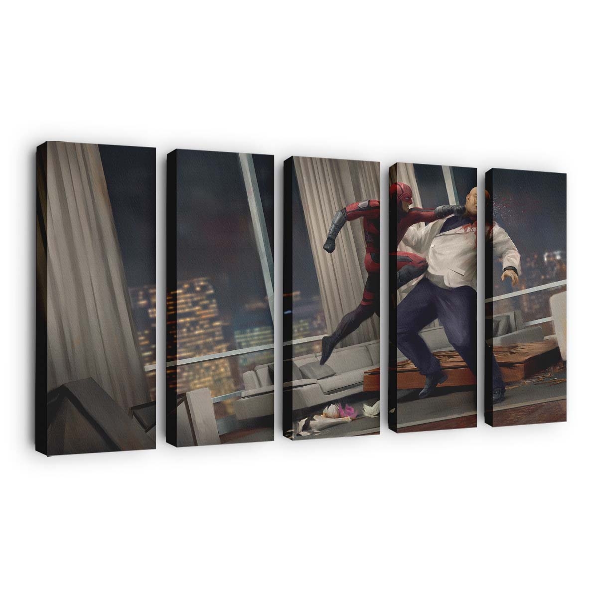 Ob als dramatisches Actionmotiv oder kunstvolle Charakterdarstellung – dieses Leinwandbild bringt die Essenz von Dardevil-Fan-Artwork Leinwandbild – Marvel Wanddeko direkt an Ihre Wand und schafft eine besondere Atmosphäre in jedem Raum. Ideal für Wohnzimmer, Gaming-Bereich oder Sammlerzimmer.
