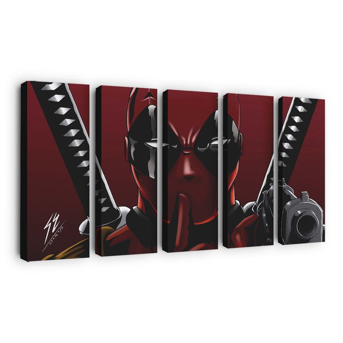 Dieses Leinwandbild ist nicht nur Dekoration – es ist ein freches Statement, das perfekt zur unverwechselbaren Persönlichkeit von Deadpool: Dominanz Leinwandbild – Marvel Wanddeko passt.