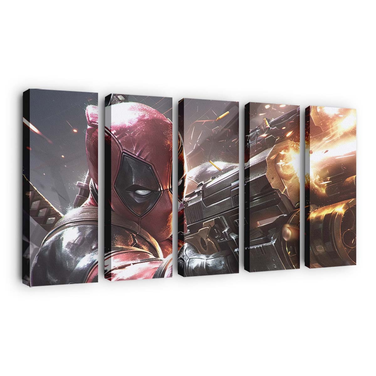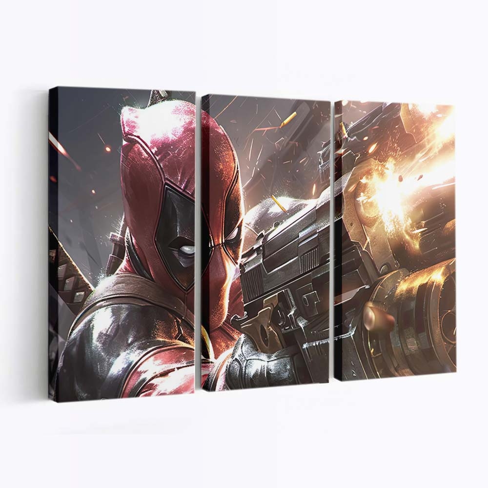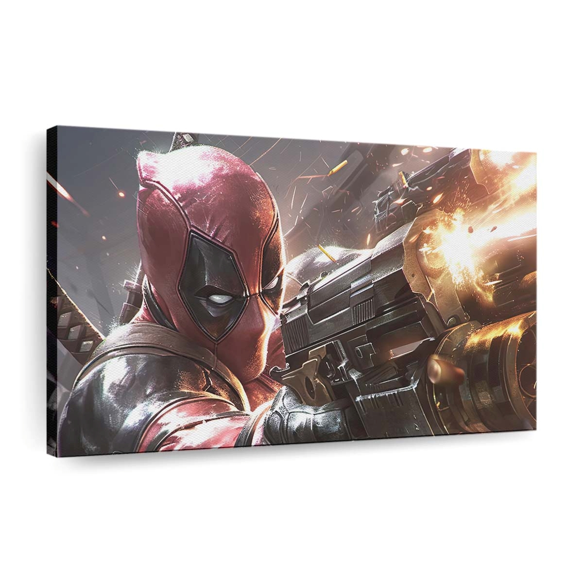 Dieses Leinwandbild ist nicht nur Dekoration – es ist ein freches Statement, das perfekt zur unverwechselbaren Persönlichkeit von Deadpool fällt Leinwandbild – Marvel Wanddeko passt.