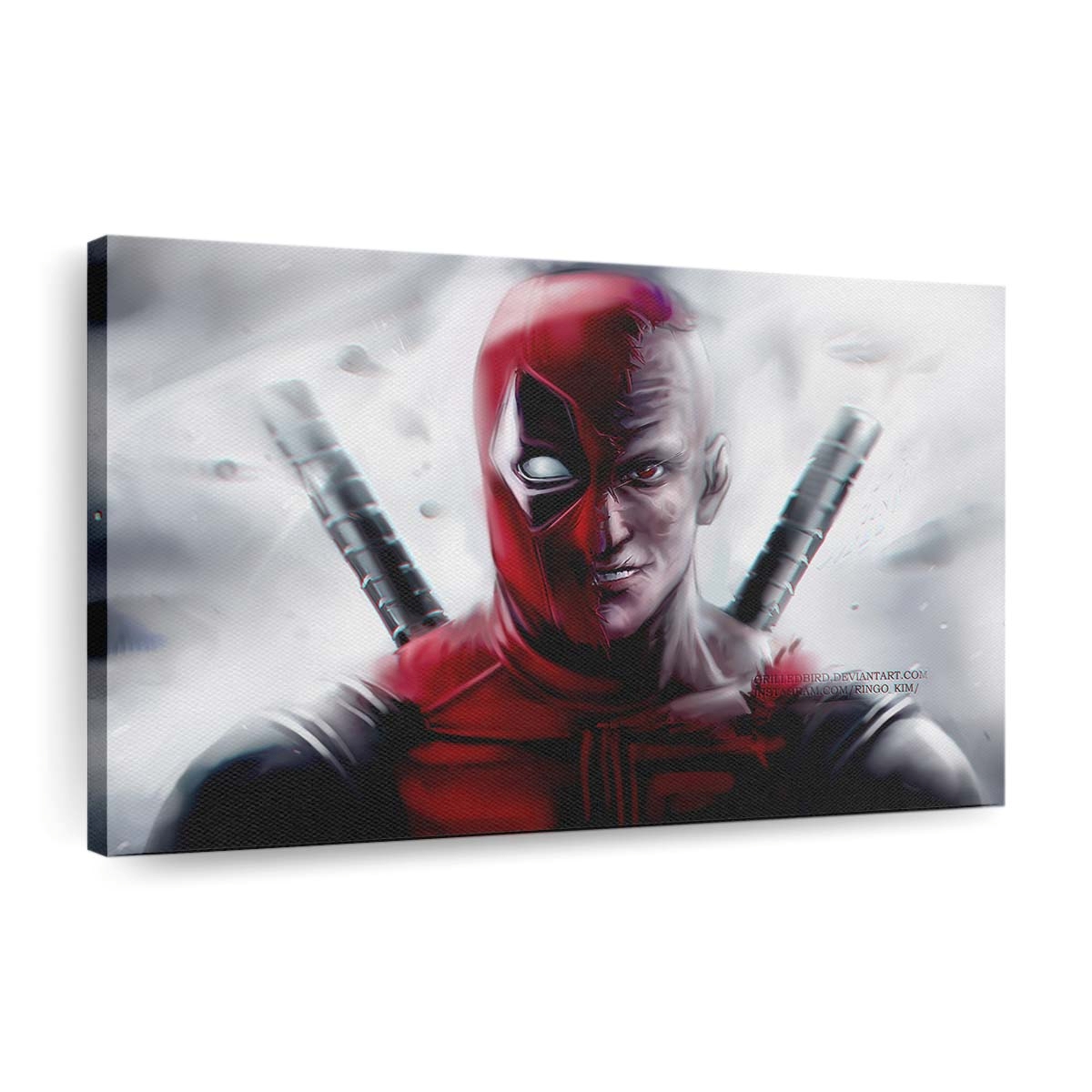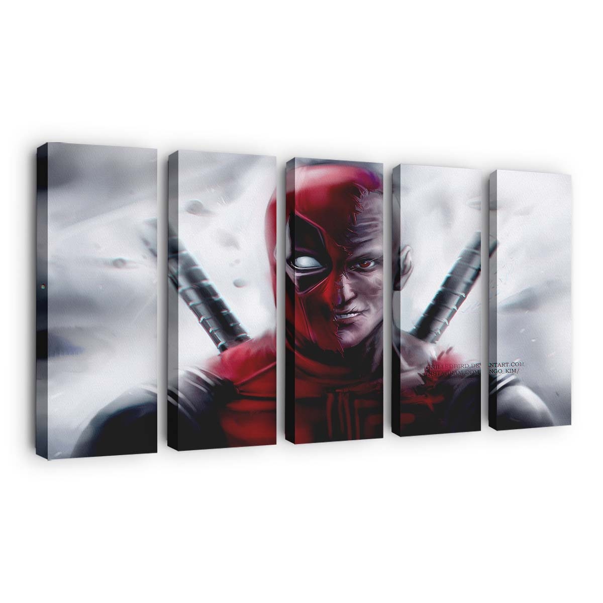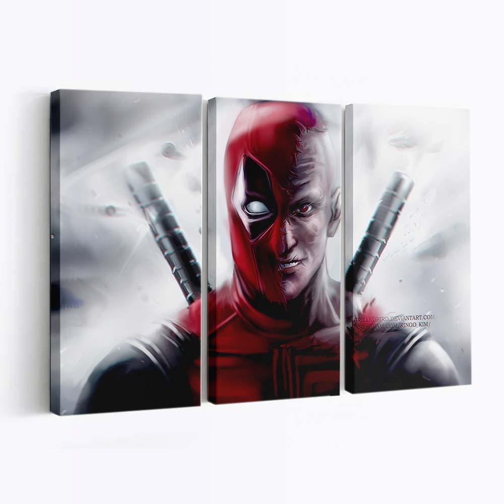 - Charakterstarkes Design: Ein unverwechselbares Artwork von Deadpool Kunst 3 Leinwandbild – Marvel Wanddeko, das seinen Humor und seine Wildheit perfekt einfängt.