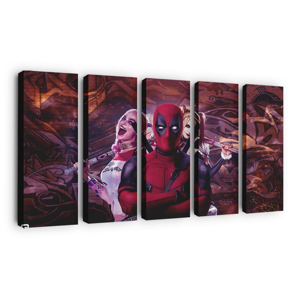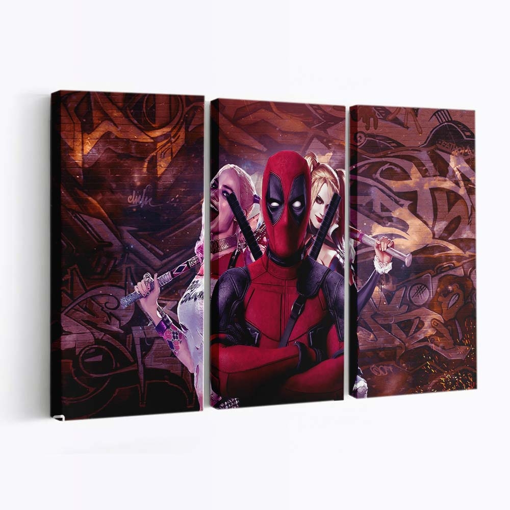 - Charakterstarkes Design: Ein unverwechselbares Artwork von Deadpool und Harley Quinn Leinwandbild – Marvel Wanddeko, das seinen Humor und seine Wildheit perfekt einfängt.
