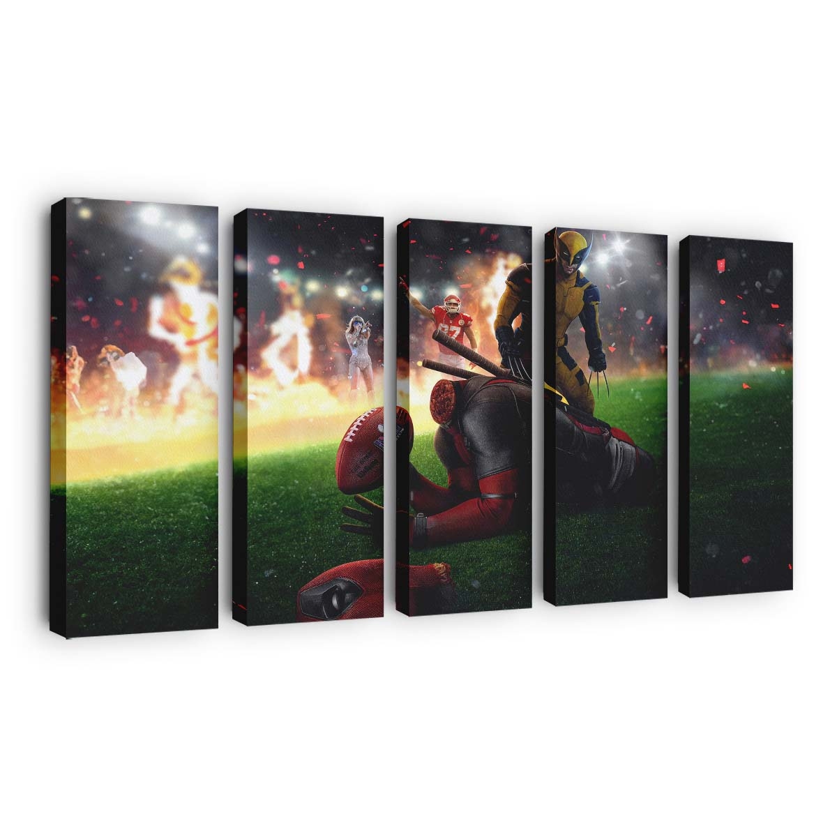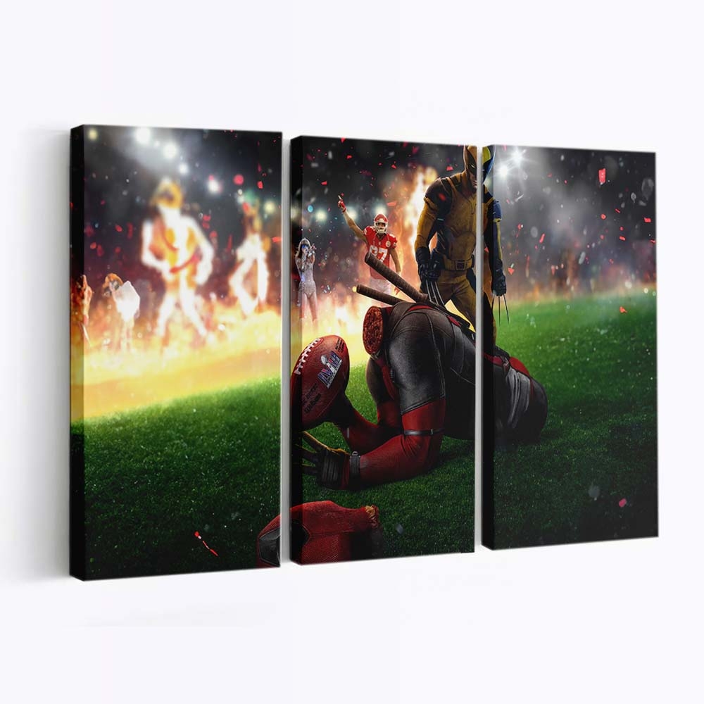 Deadpool und Wolverine Super Bowl Leinwandbild – Marvel Wanddeko Leinwandbild – Frech, wild und absolut einzigartig