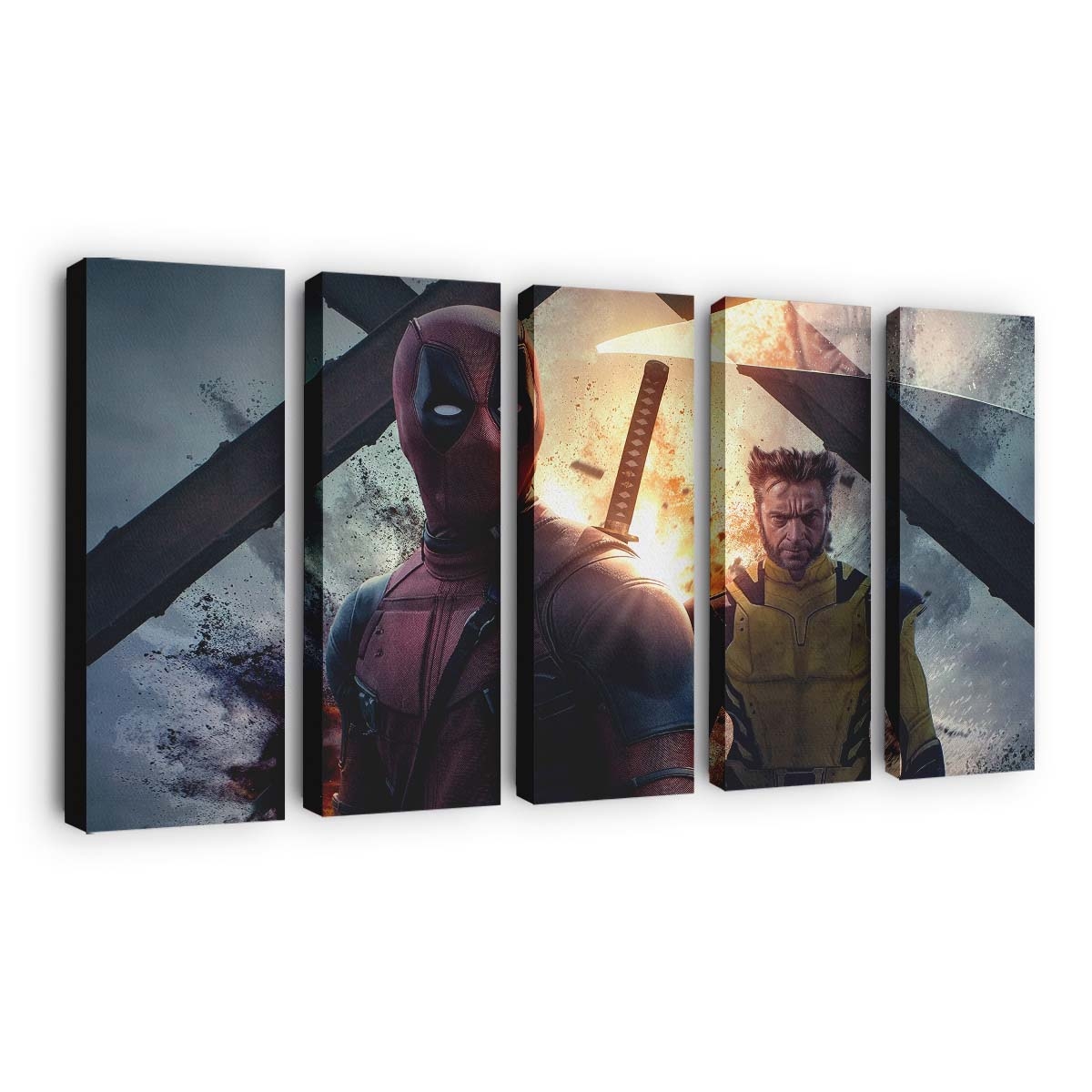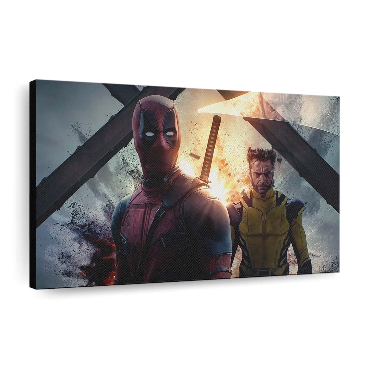 - Charakterstarkes Design: Ein unverwechselbares Artwork von Deadpool und Wolverine: Unstoppable Force Leinwandbild – Marvel Wanddeko, das seinen Humor und seine Wildheit perfekt einfängt.