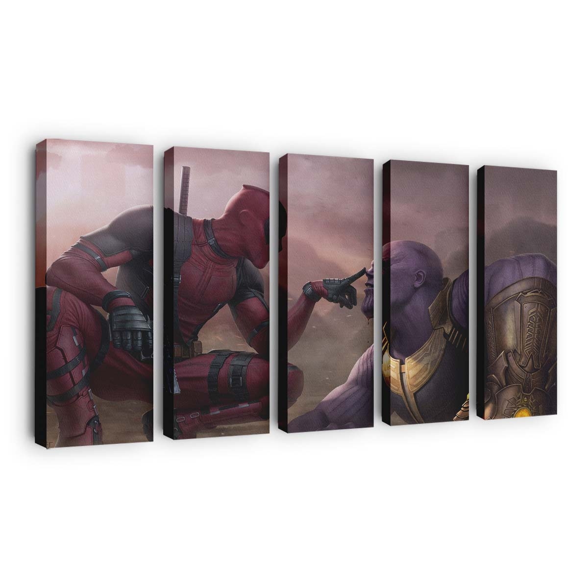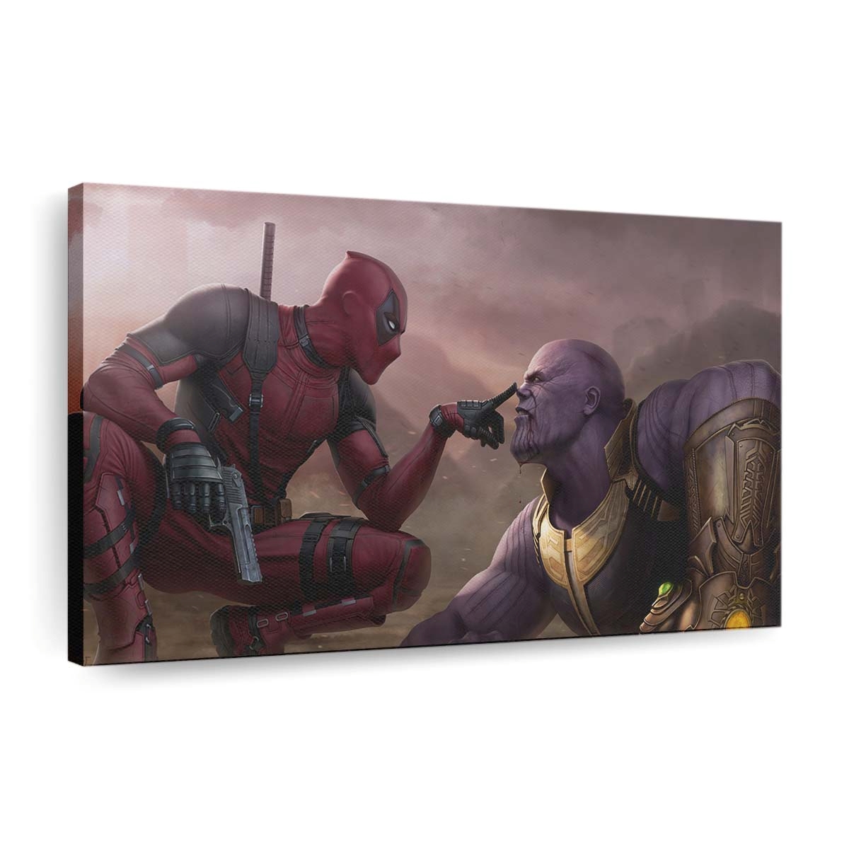 Deadpool vs. Thanos Leinwandbild – Marvel Wanddeko Leinwandbild – Frech, wild und absolut einzigartig