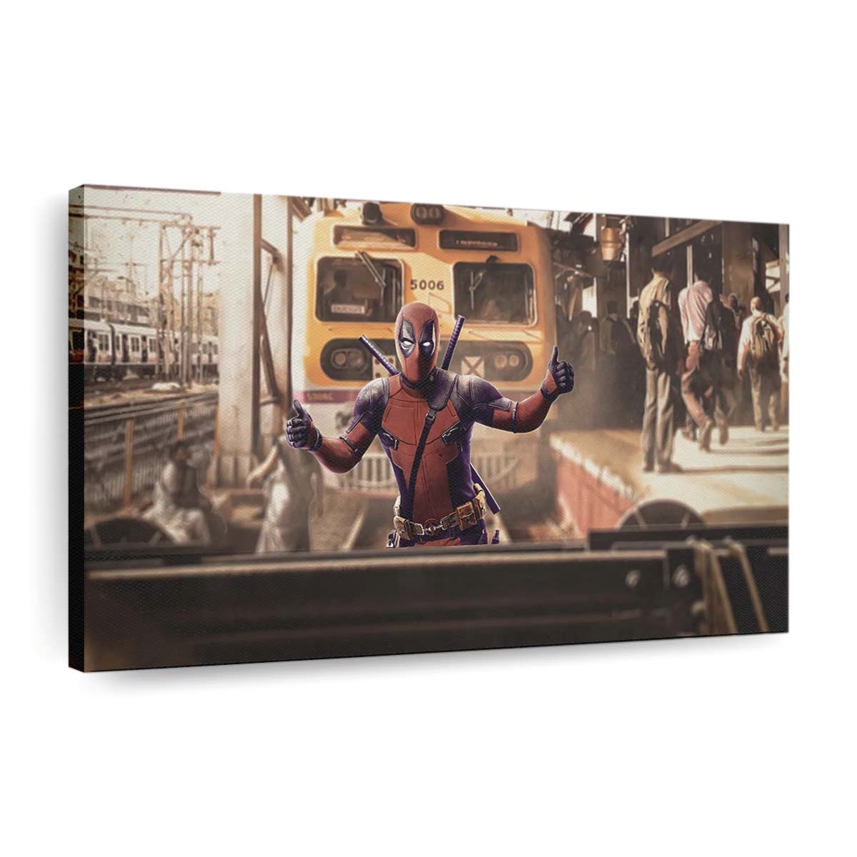 Dieses Leinwandbild ist nicht nur Dekoration – es ist ein freches Statement, das perfekt zur unverwechselbaren Persönlichkeit von Deadpool Zug Leinwandbild – Marvel Wanddeko passt.