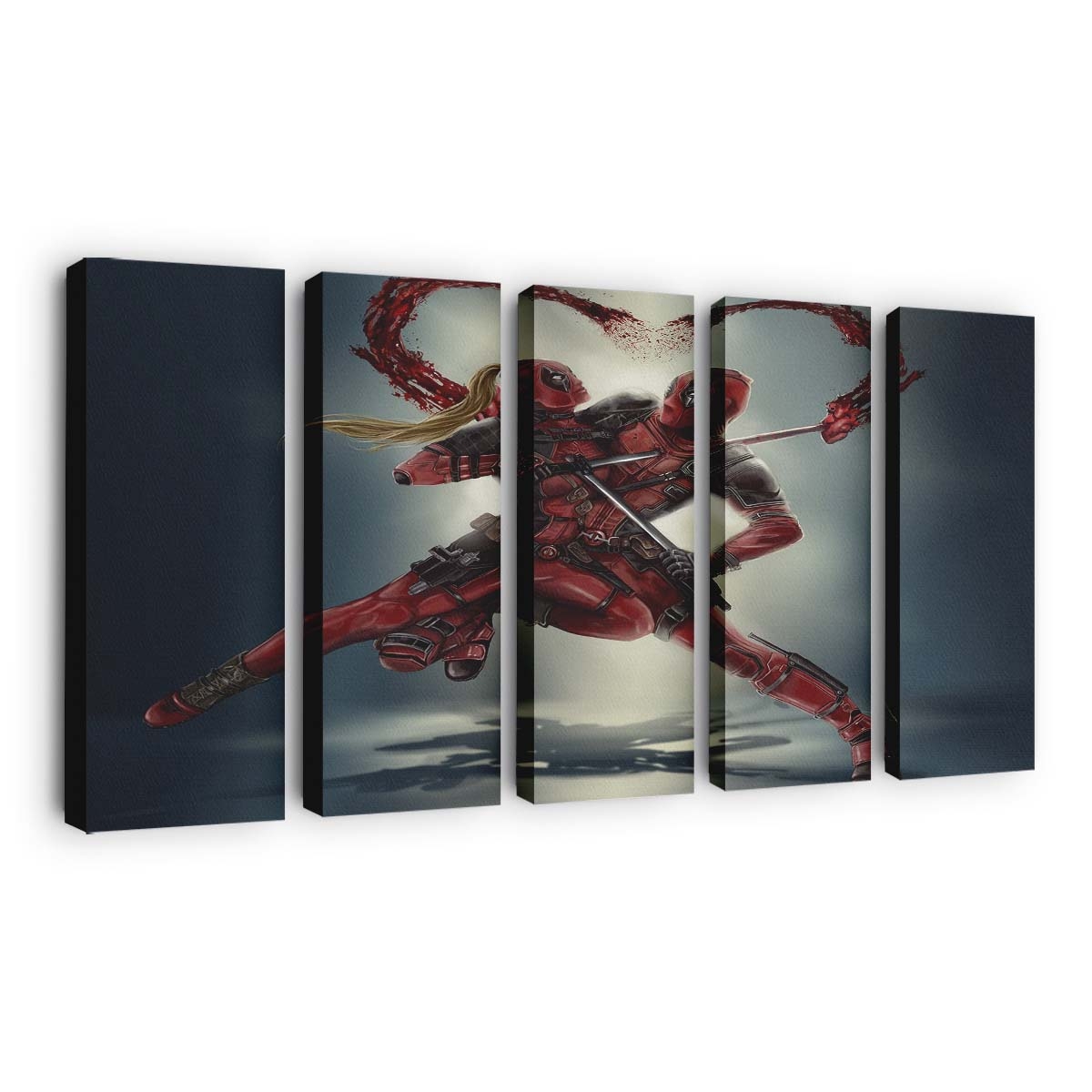 - Charakterstarkes Design: Ein unverwechselbares Artwork von Dedpool vs. Lady Deadpool Leinwandbild – Marvel Wanddeko, das seinen Humor und seine Wildheit perfekt einfängt.
