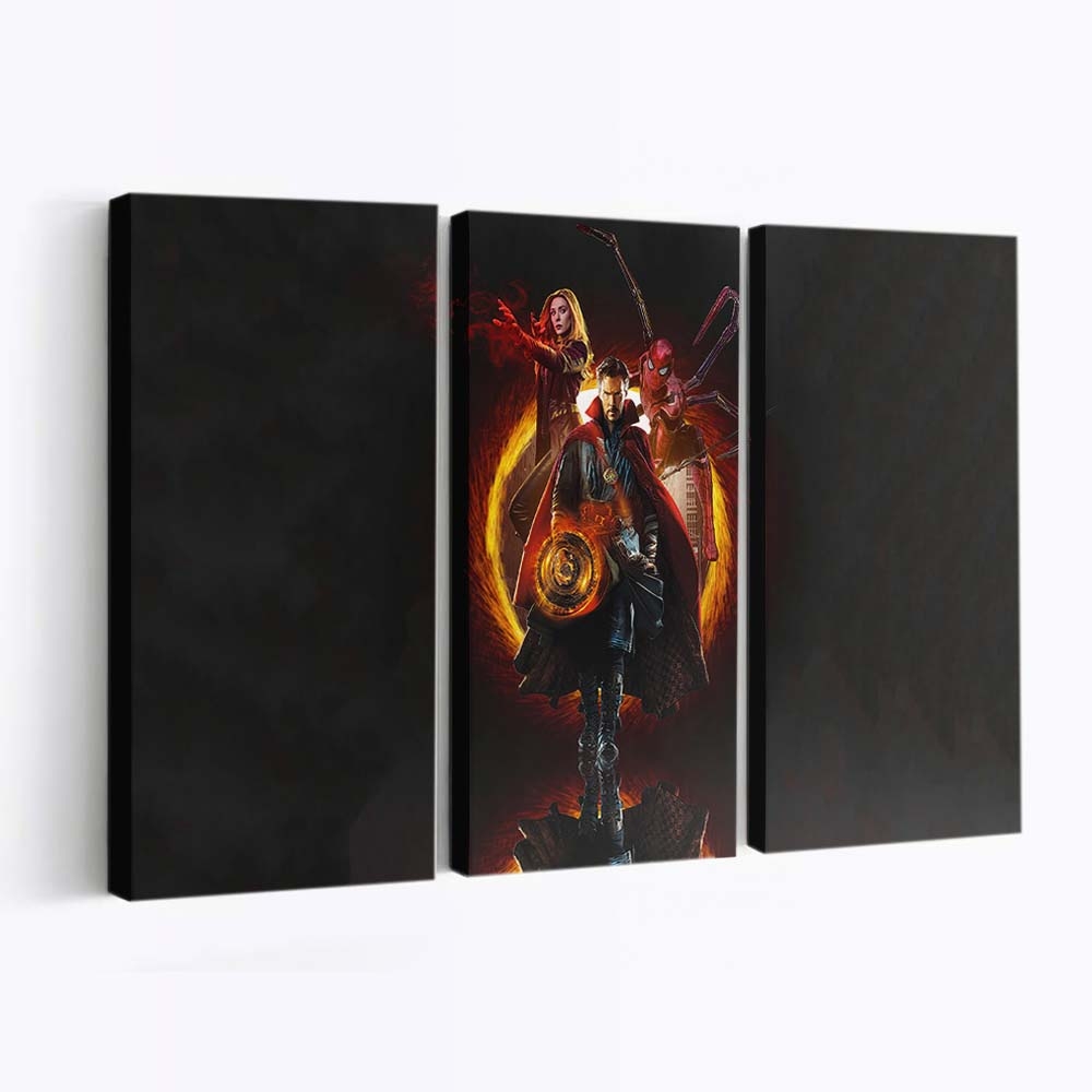 Doctor Strange Wanda And Spiderman Leinwandbild – Marvel Wanddeko – Mystische Marvel Kunst für Ihr Zuhause