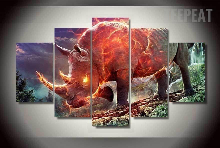Fiery Rhinoceros Abstract Animal Leinwandbilder Kunstdrucke