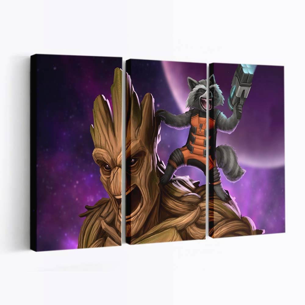 Groot And Rocket Raccoon Artwork Leinwandbild – Marvel Wanddeko