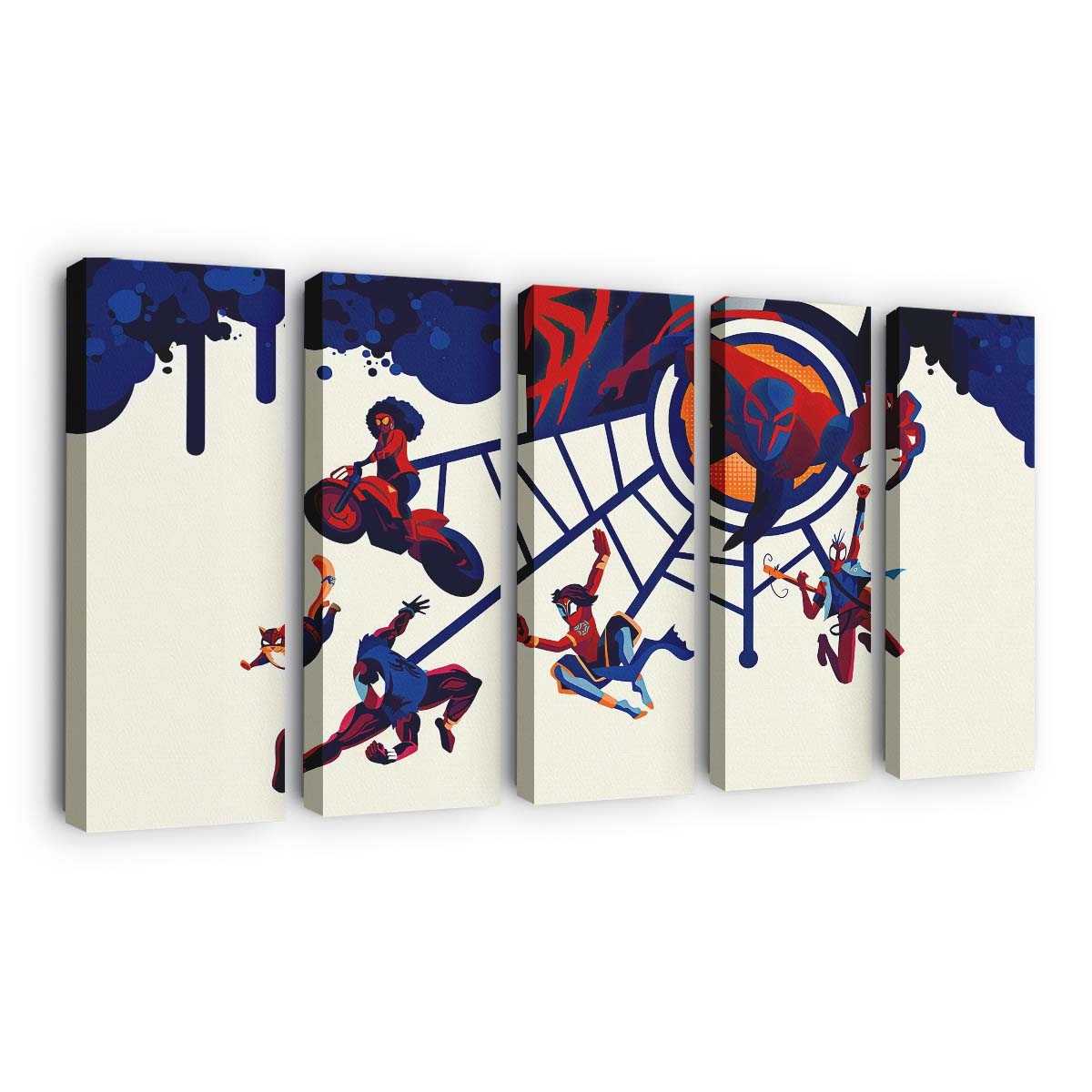 Gwen Stacy, Miles Morales, Spider Man 2099, Miguel O’Hara und Spider Punk Leinwandbild – Wanddeko