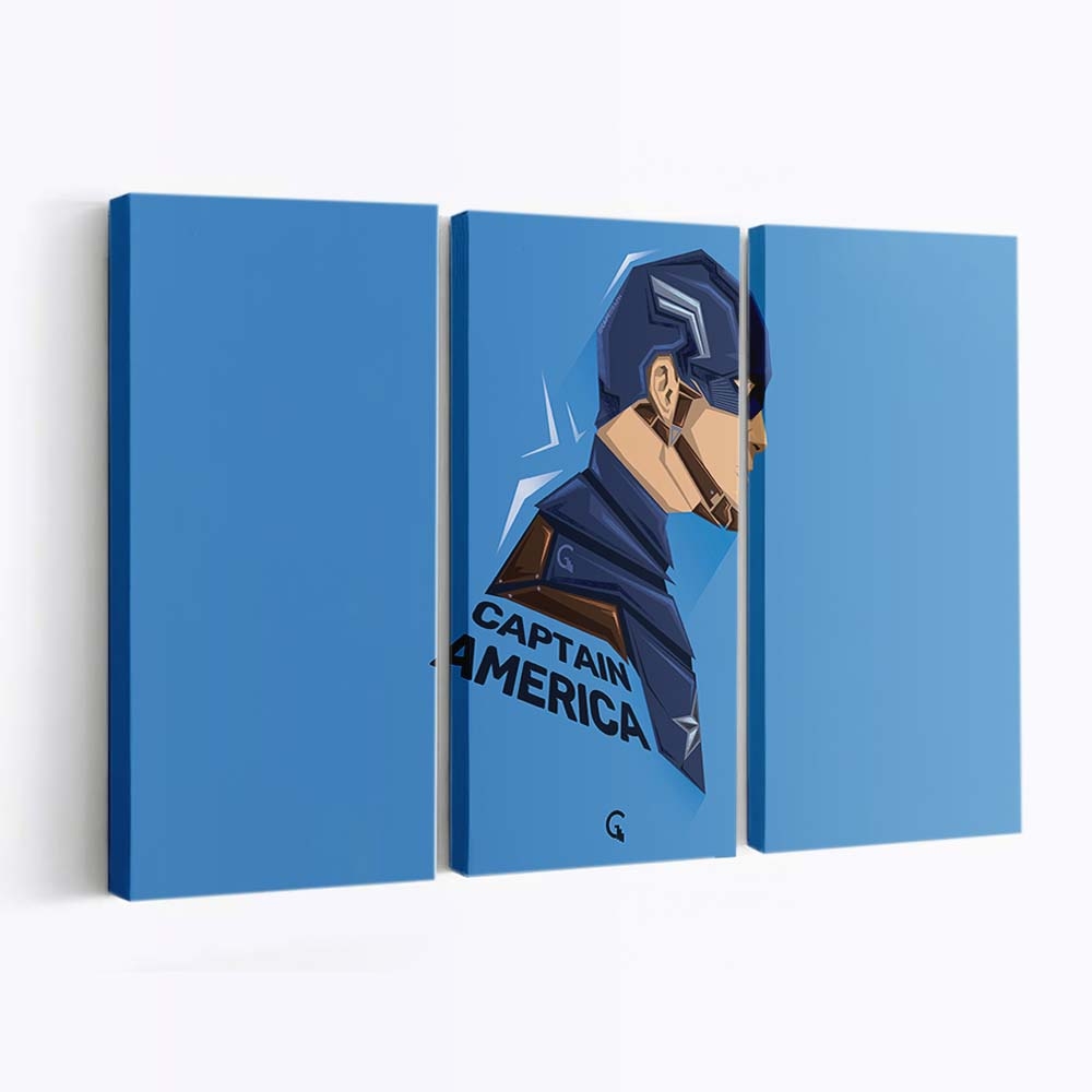 - Ikonisches Marvel-Design: Eine kraftvolle Darstellung von Hauptmann Amerika Pop Kopf Minimal Leinwandbild – Marvel Wanddeko – Symbol für Stärke und Hoffnung.