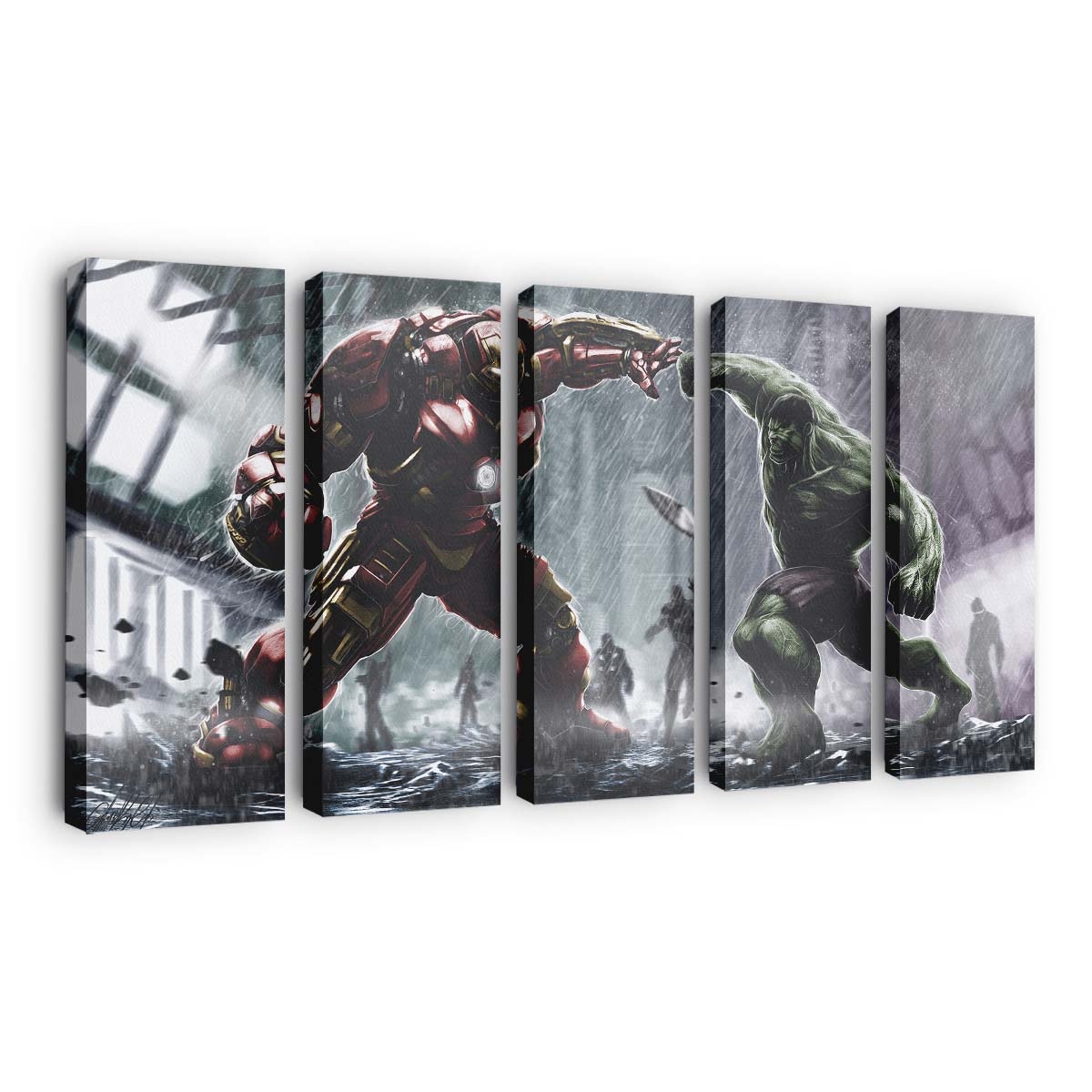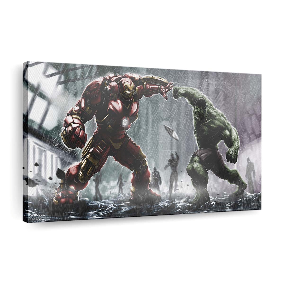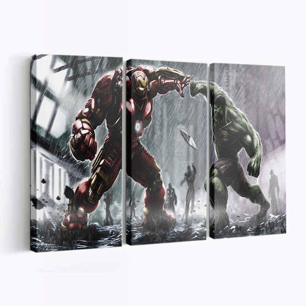 Iron Hulkbuster und Hulk kämpfen Kunstwerk Leinwandbild Wanddeko