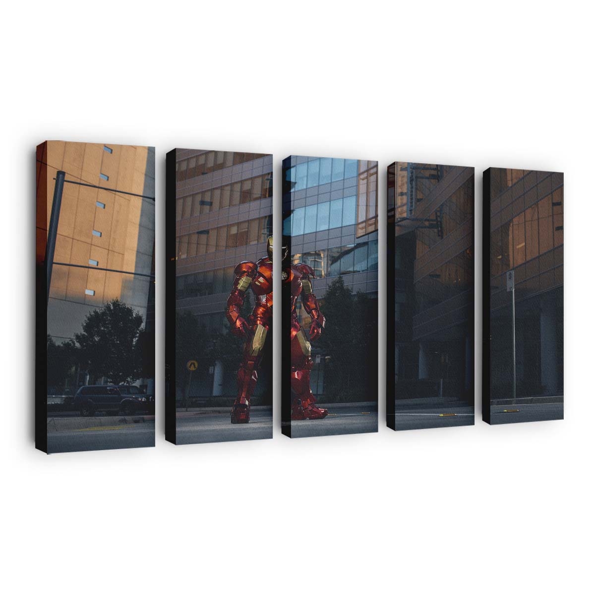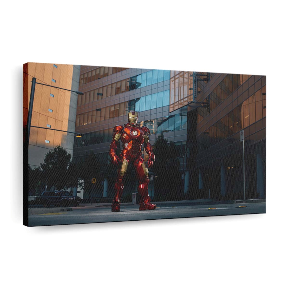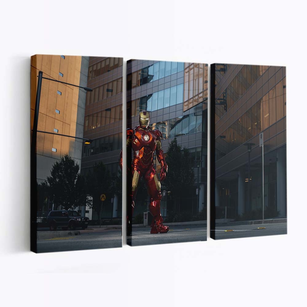 Iron Man in der Stadt Leinwandbild – Wanddeko