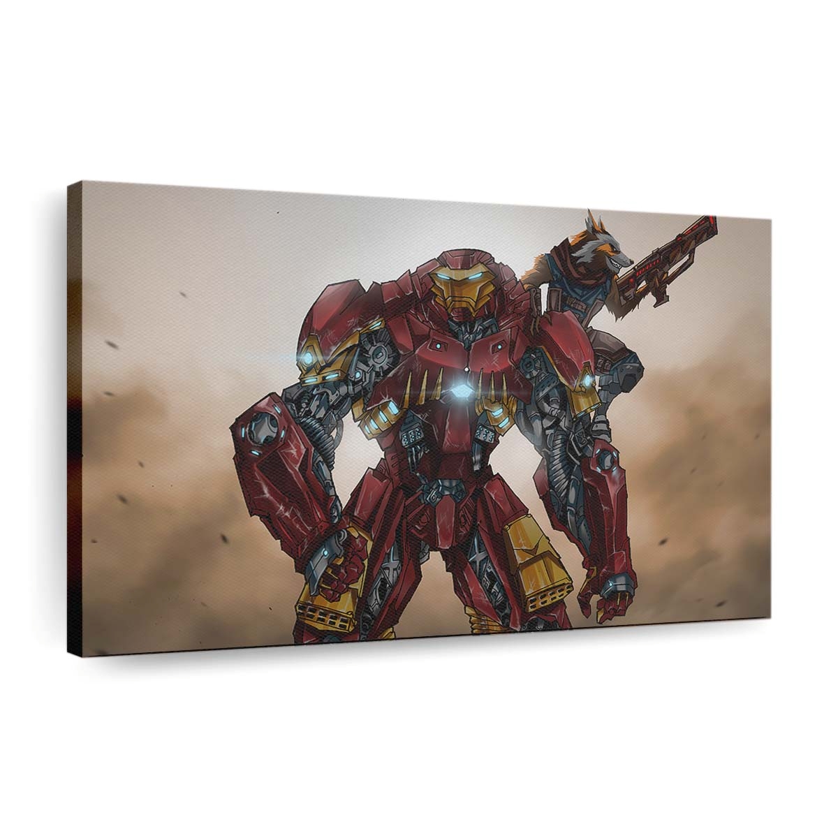 Iron Man in Hulkbuster-Rüstung und Raketen-Kunstwerk Leinwandbild – Wanddeko