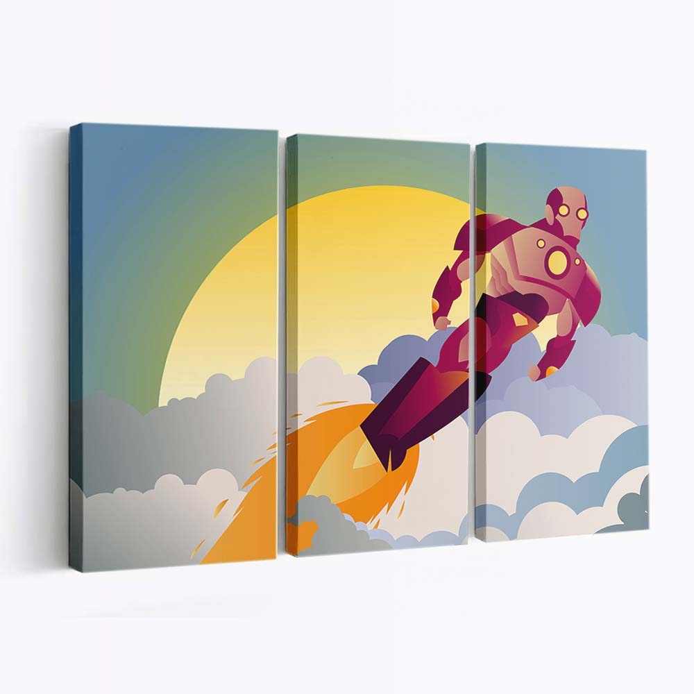 Iron Man Sonnenuntergang Wolken Minimalistisch Leinwandbild – Wanddeko