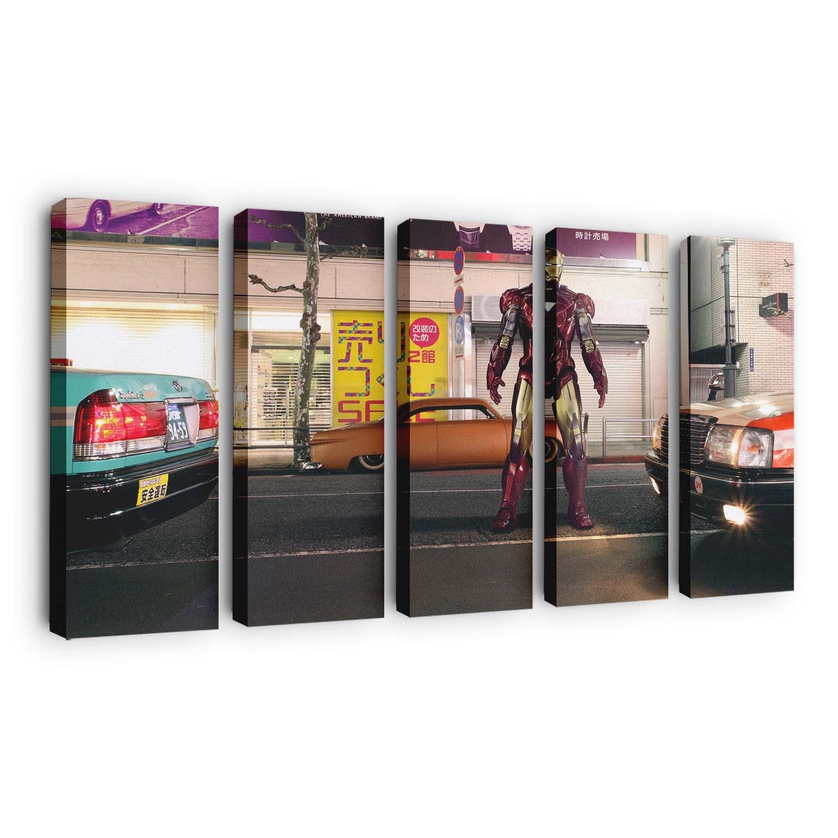 Iron Man steht auf der Straße Leinwandbild – Wanddeko