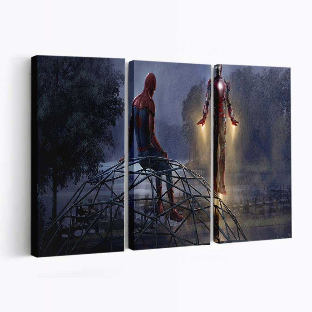 Iron Man und Spiderman Artwork Leinwandbild – Wanddeko