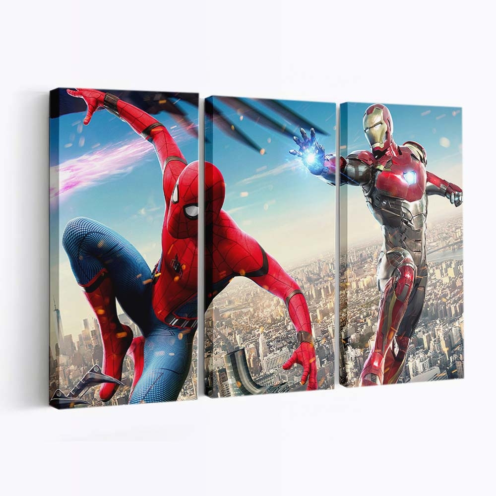 Iron Man und Spiderman in Spiderman Homecoming HD Leinwandbild – Wanddeko
