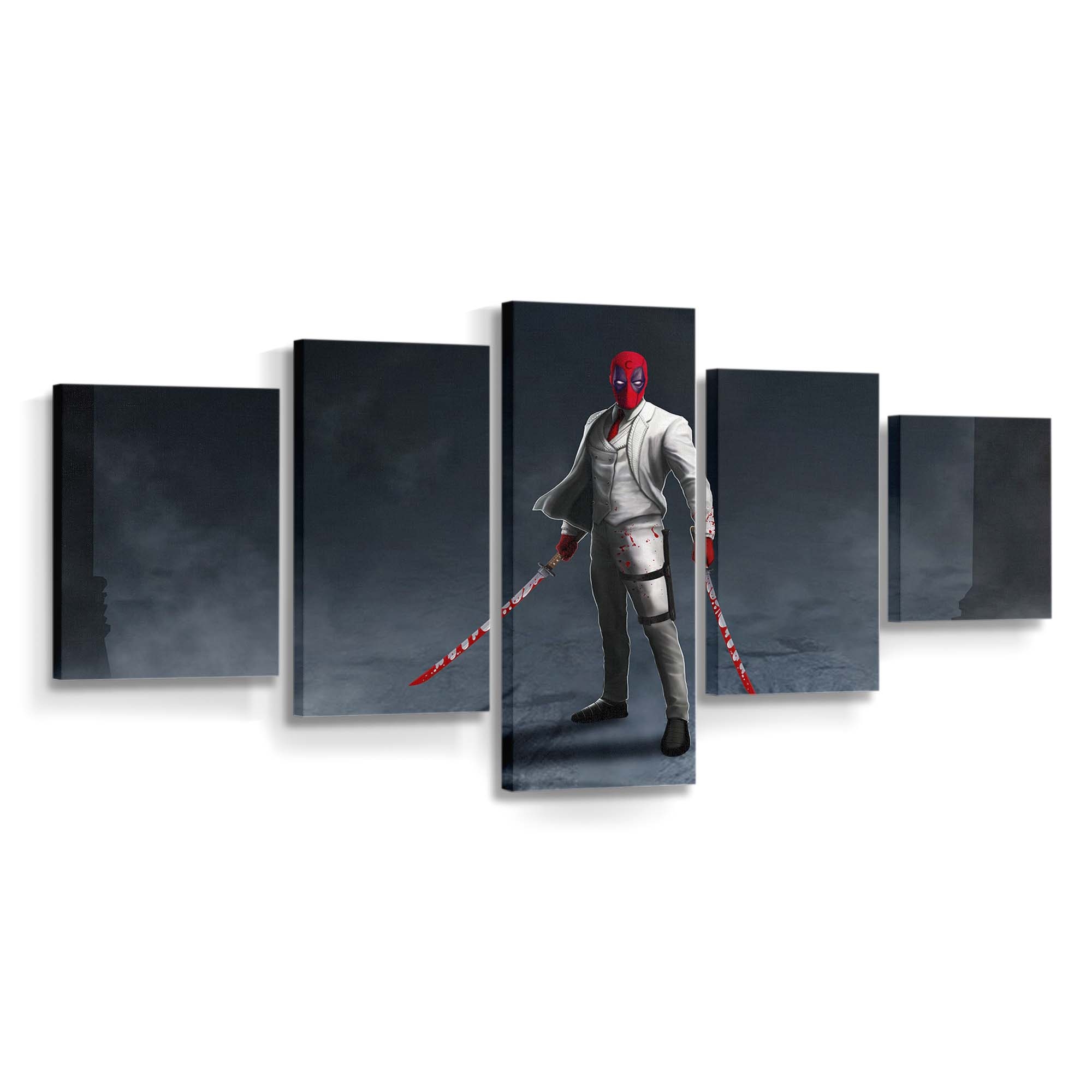 Dieses Leinwandbild ist nicht nur Dekoration – es ist ein freches Statement, das perfekt zur unverwechselbaren Persönlichkeit von Marvel Duell Deadpool Leinwandbild – Marvel Wanddeko passt.