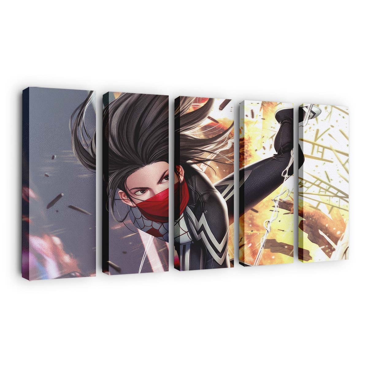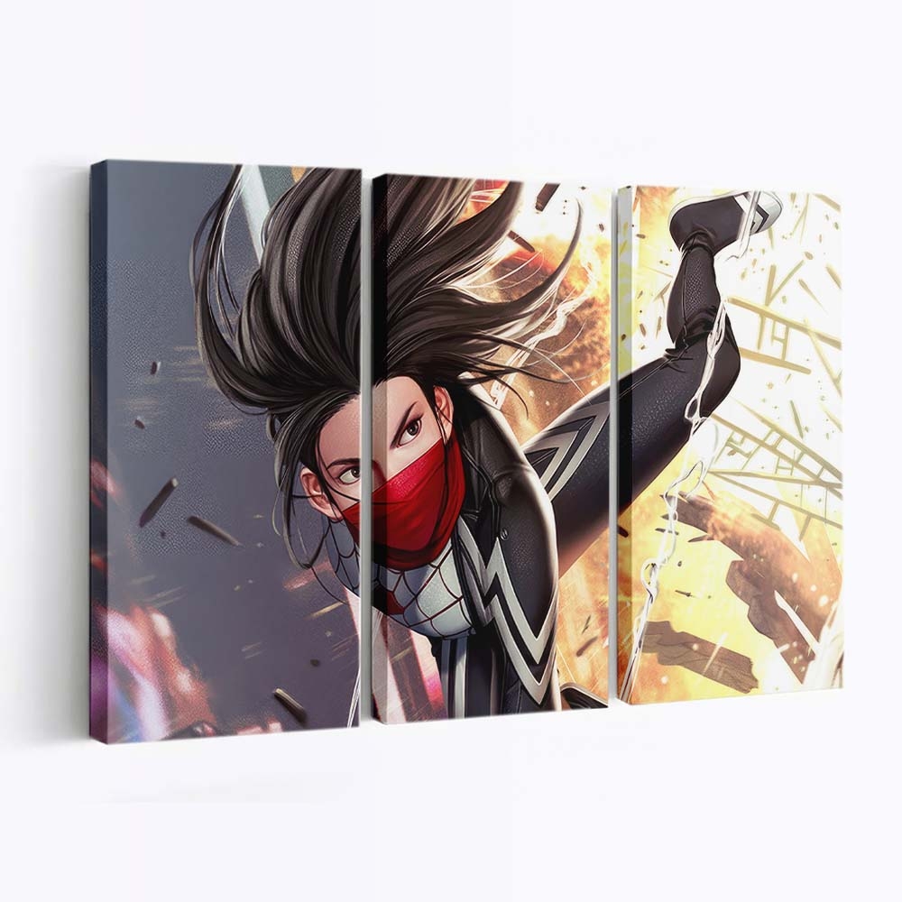 Marvel Silk steht im Mittelpunkt Action Leinwandbild – Wanddeko