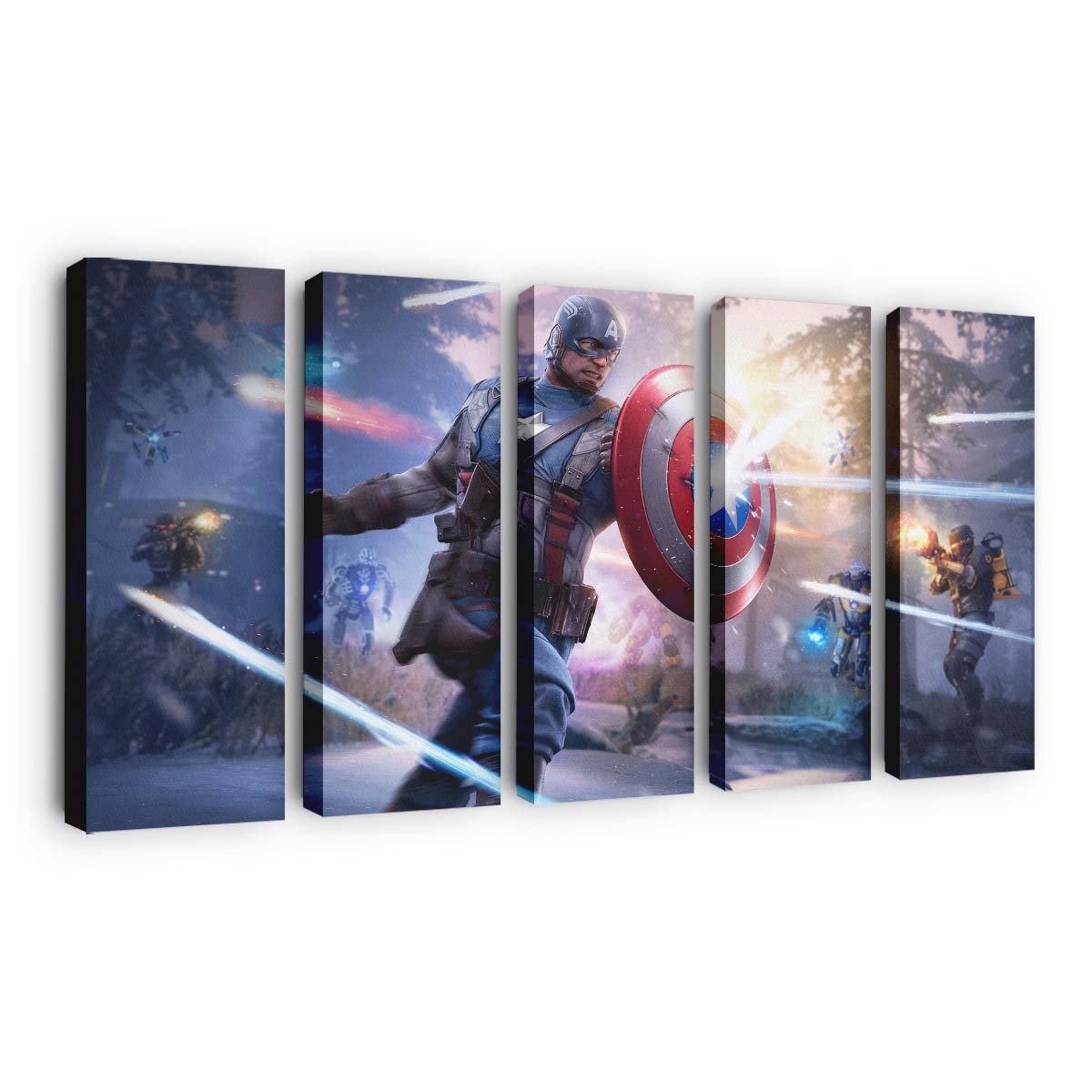 Ob als dynamisches Action-Motiv oder stilvolle Charakter-Portraitkunst, dieses Bild bringt die Essenz von Marvels Avengers Captain Amerika Leinwandbild – Marvel Wanddeko direkt an Ihre Wand und macht jeden Raum zu einem Ort der Inspiration. Perfekt für alle Marvel-Enthusiasten, Sammler und Fans des Avengers-Universums.
