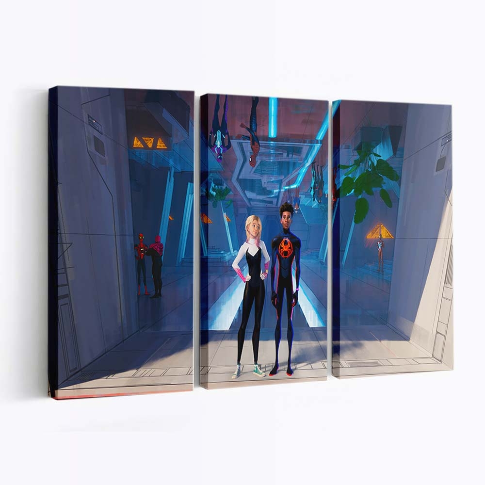 Miles Morales und Gwen Stacy in Spider Man Across the Spider Verse Leinwandbild – Wanddeko