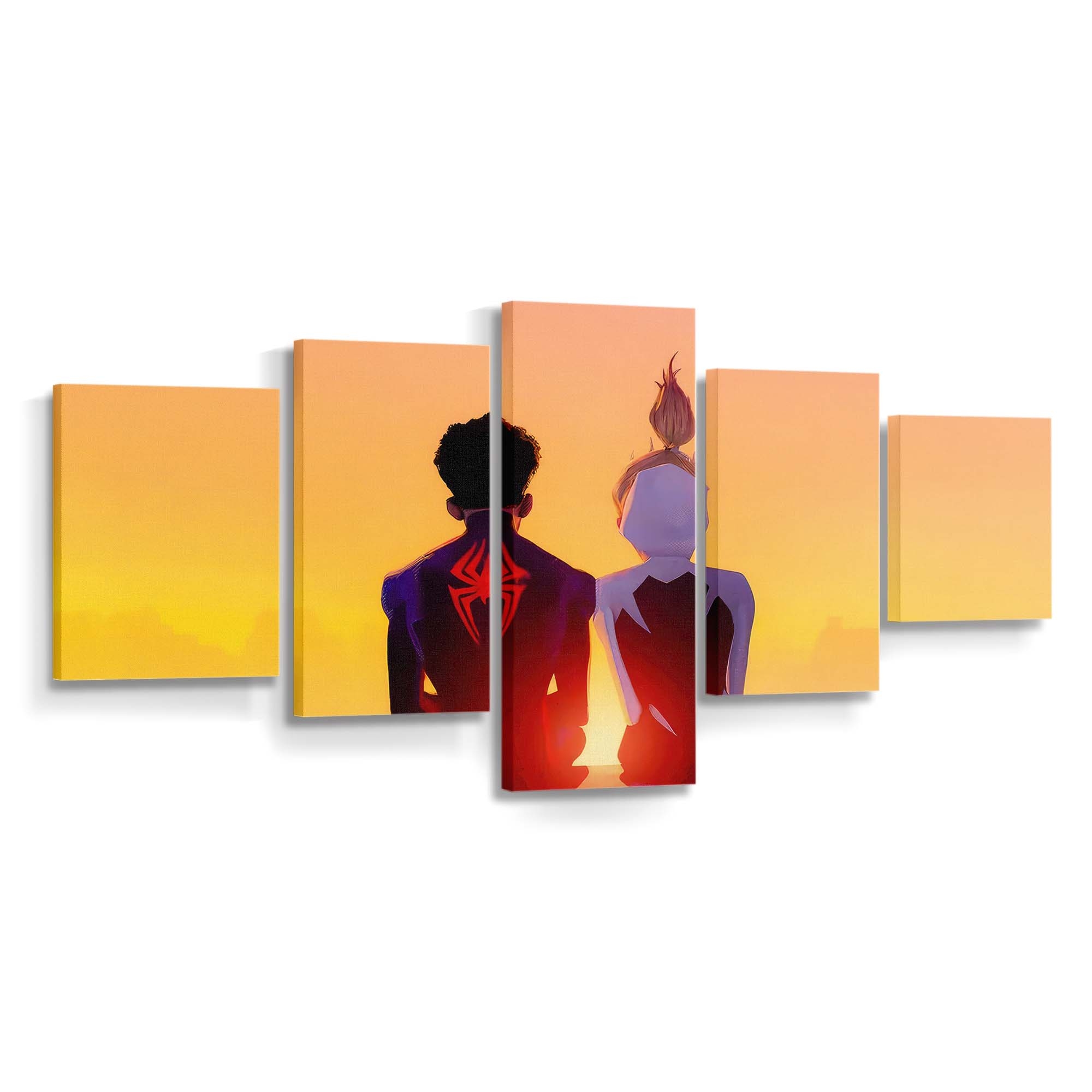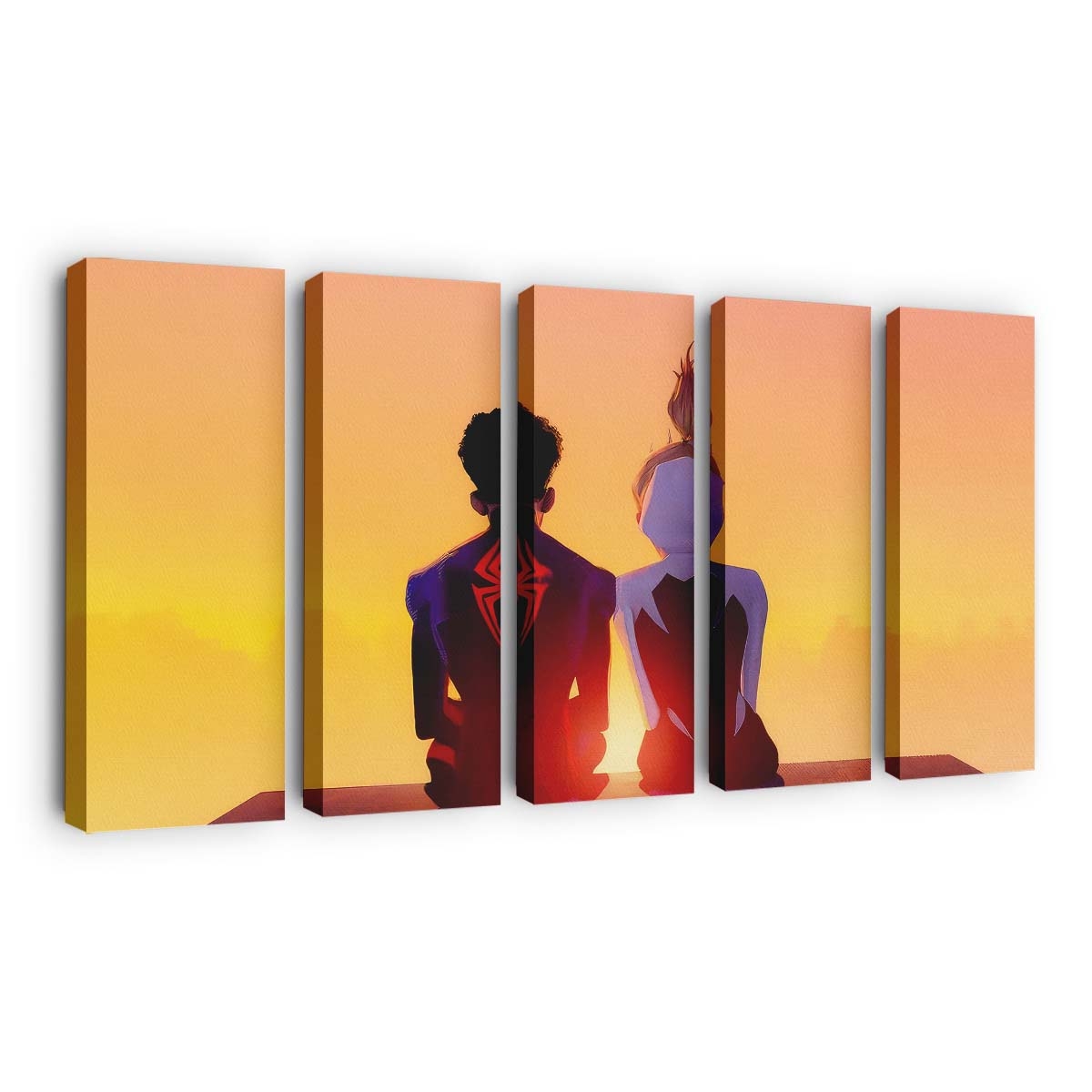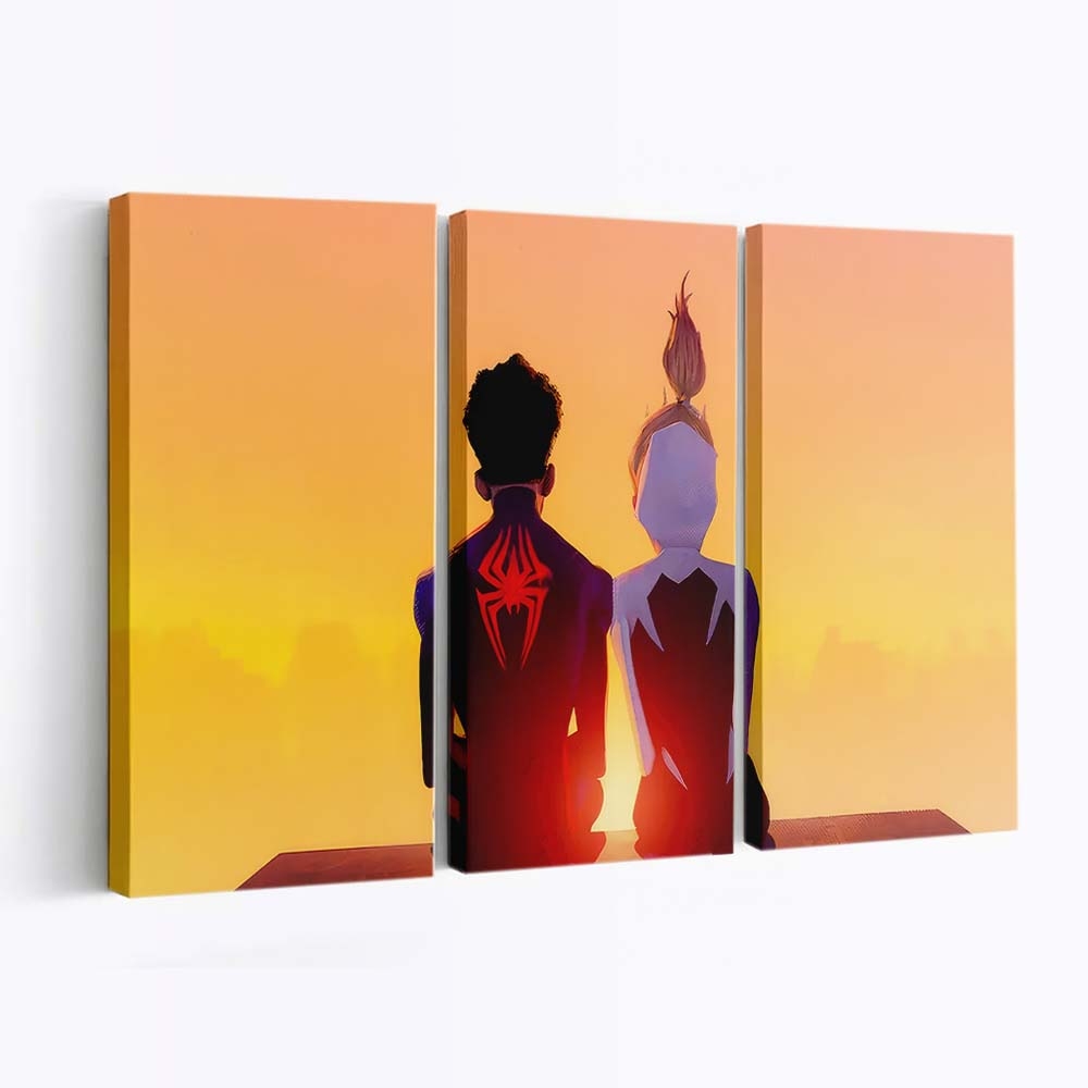 Miles Morales und Gwen Stacy schwingen sich in Aktion Leinwandbild – Wanddeko