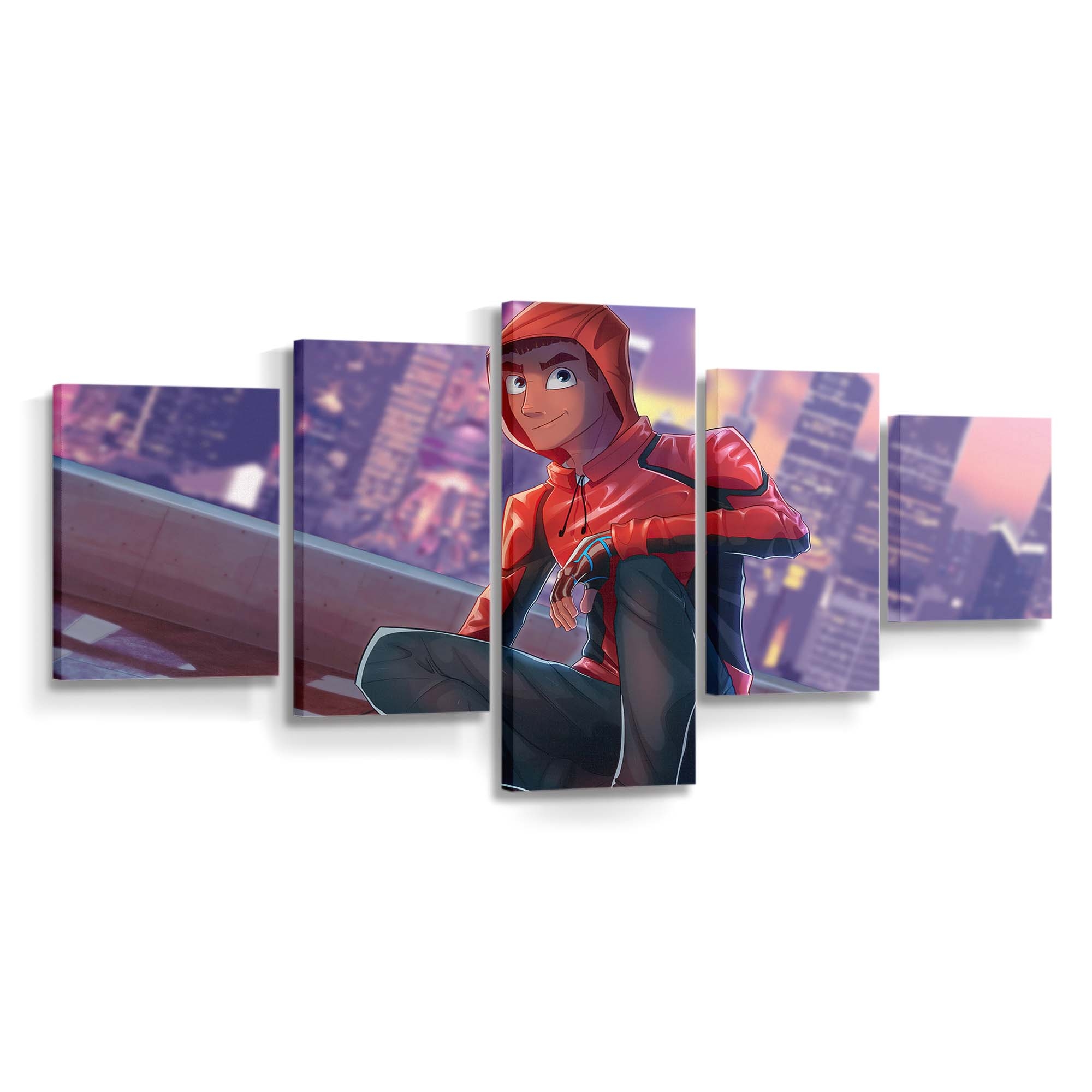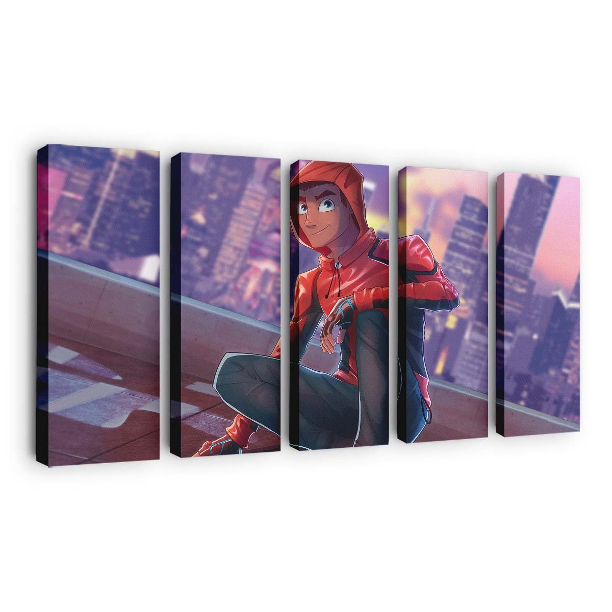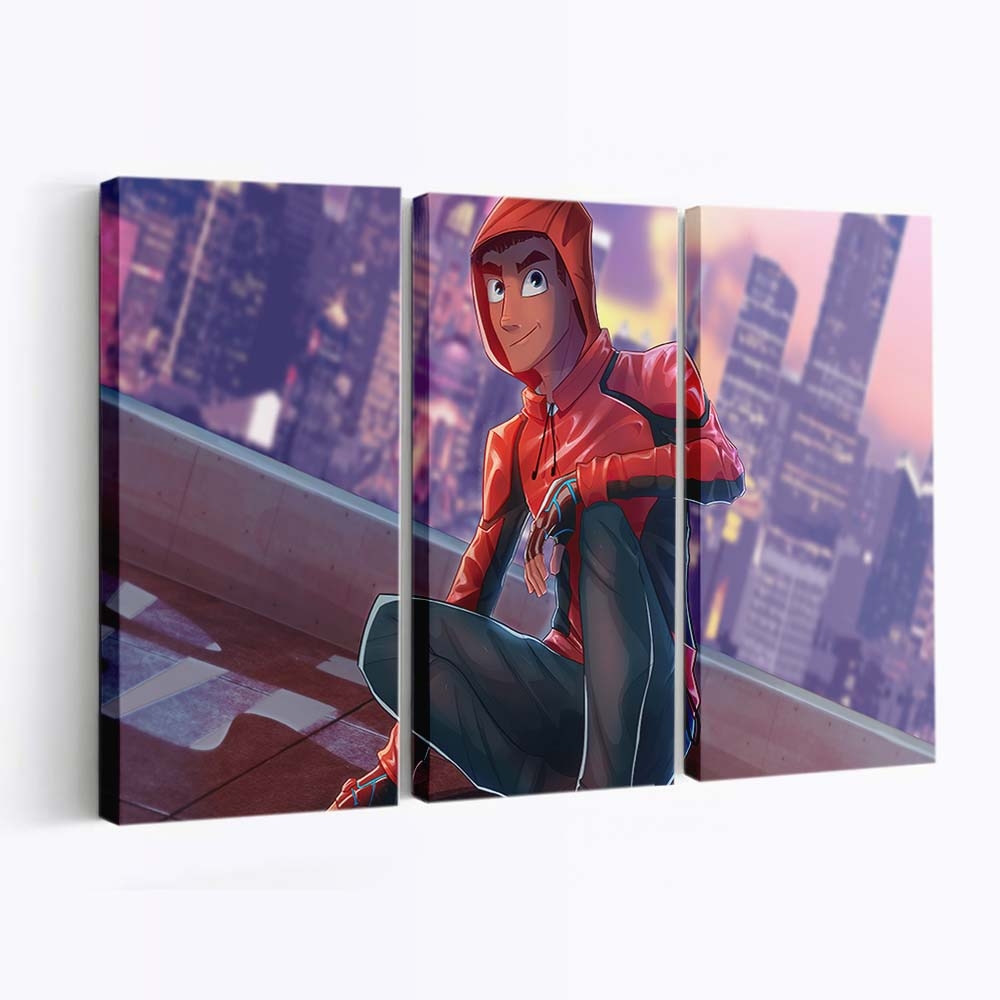 Spider Man auf dem Dach ohne Maske Leinwandbild – Wanddeko