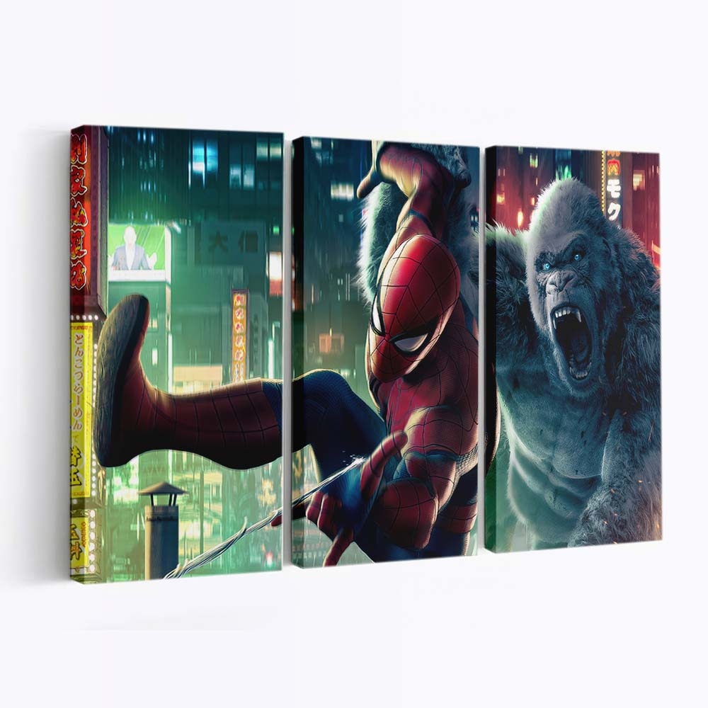 Spider Man gegen Kong Leinwandbild – Wanddeko