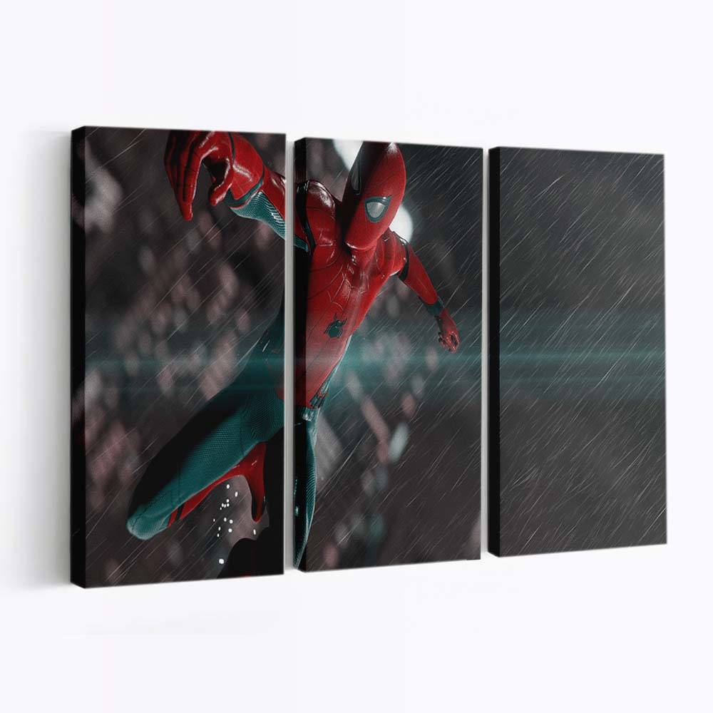 Spider Man im Regen 5 Leinwandbild – Wanddeko