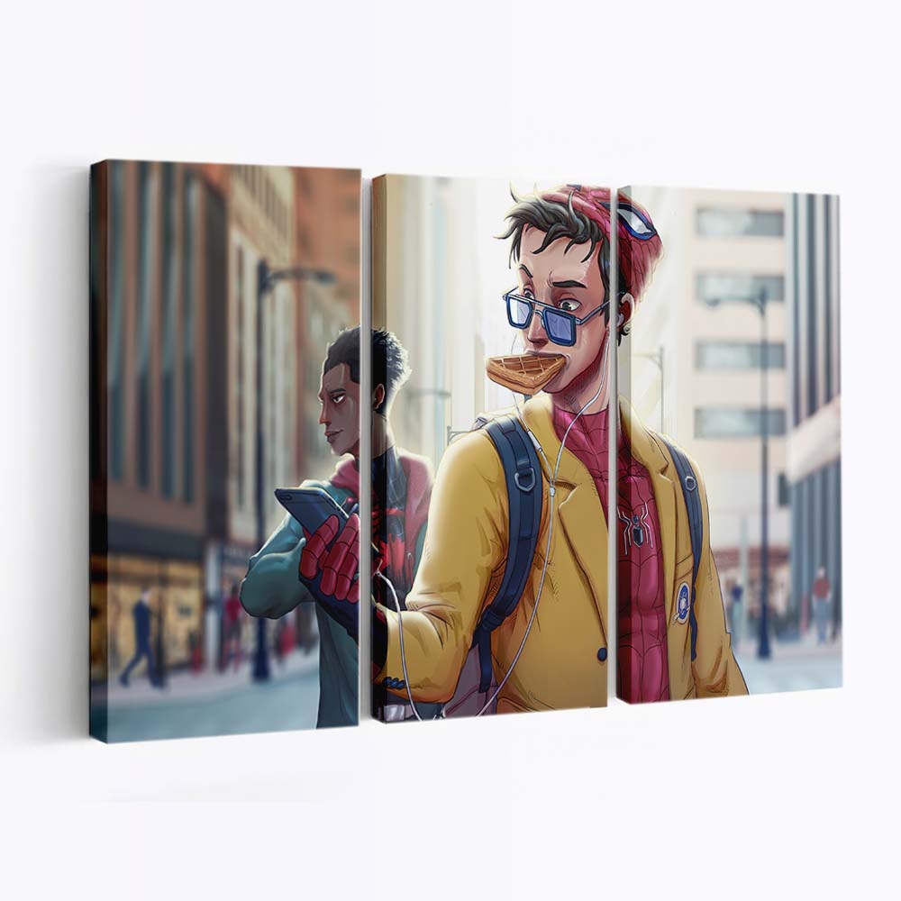 Spider Man isst Waffel Leinwandbild – Wanddeko