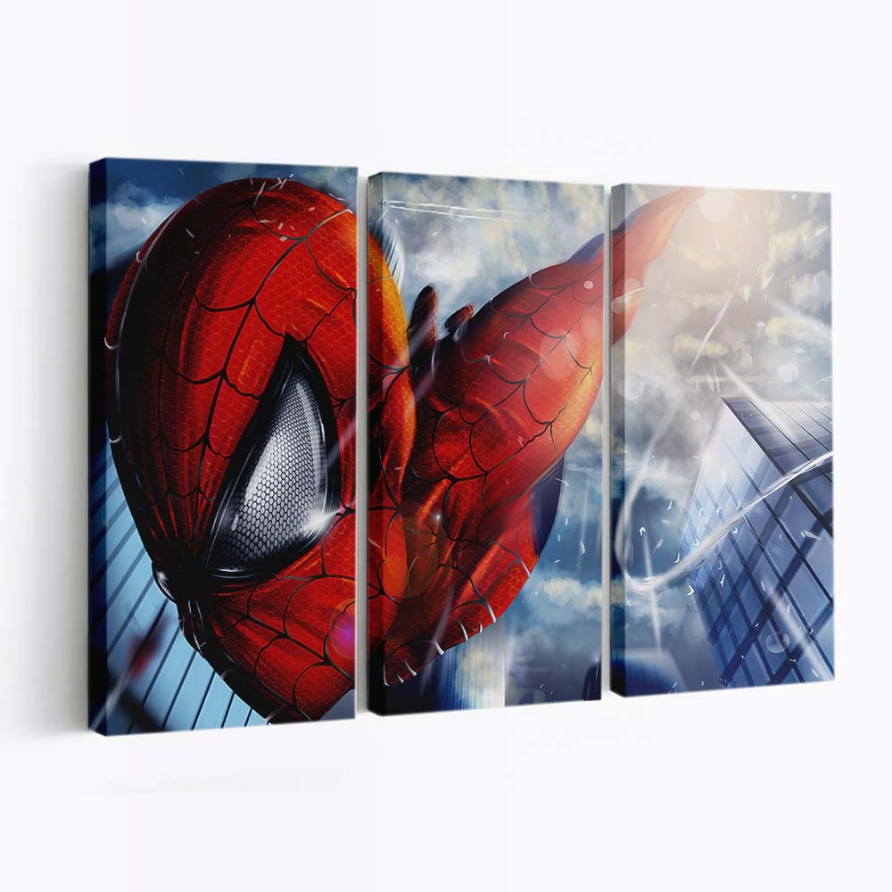 Spider Man kommt Nahaufnahme Leinwandbild – Wanddeko