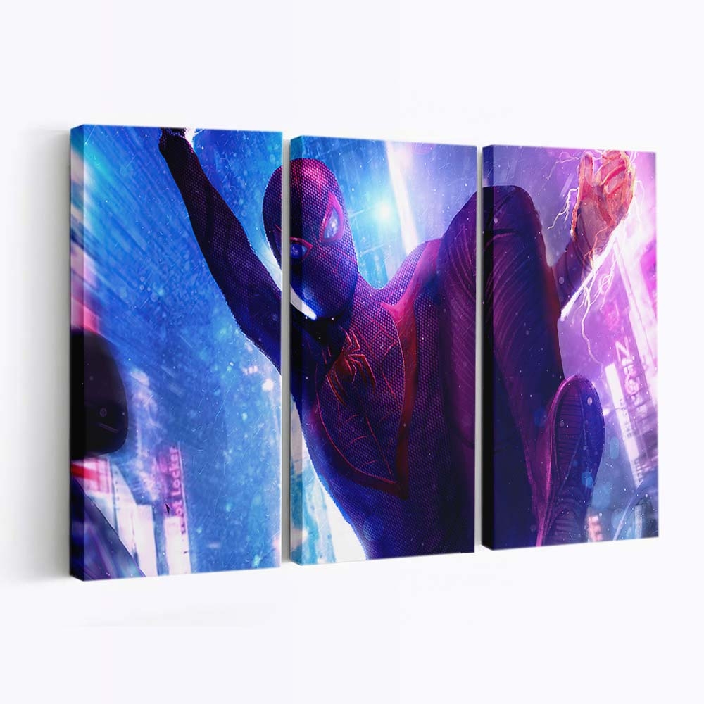 Spider Man Miles Neon Leinwandbild – Wanddeko
