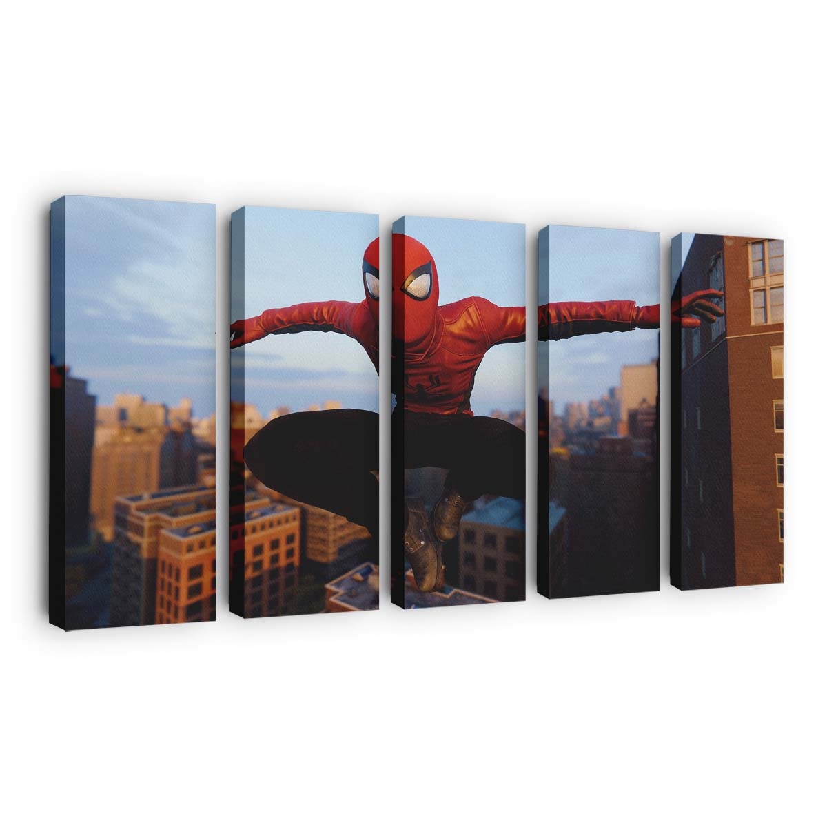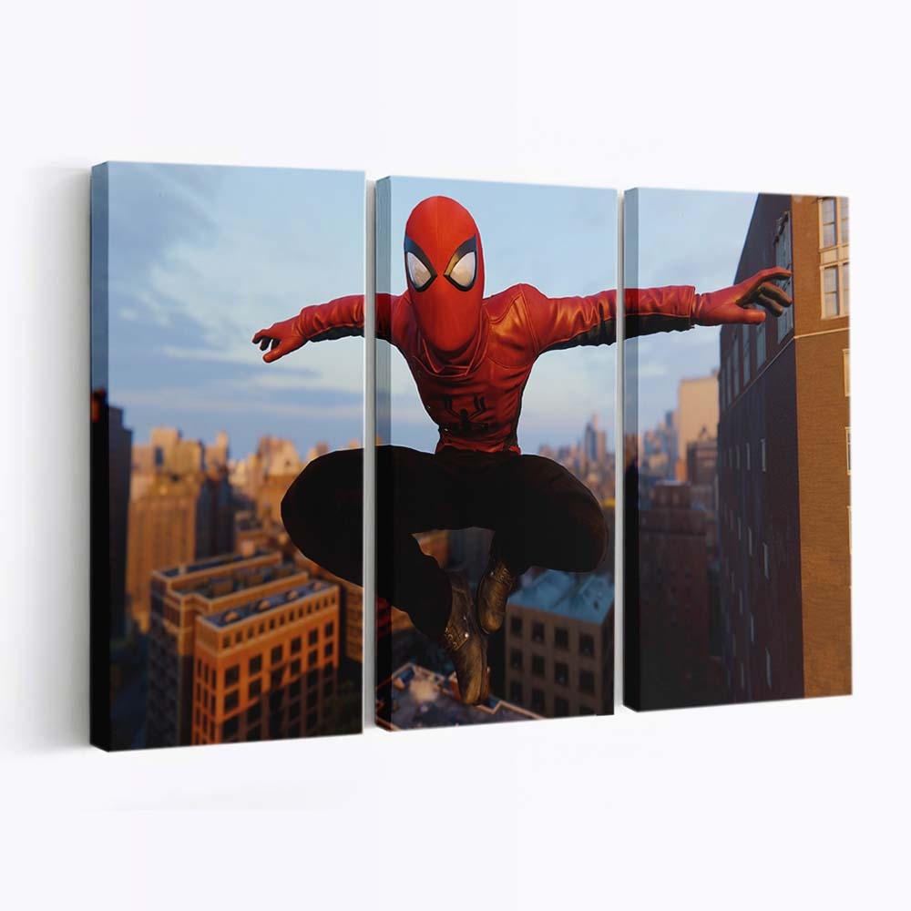 Spider Man springt in roter Spider Jacke Leinwandbild – Wanddeko