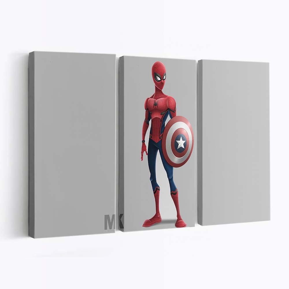 Spider Man With Captain America Shield Leinwandbild – Wanddeko