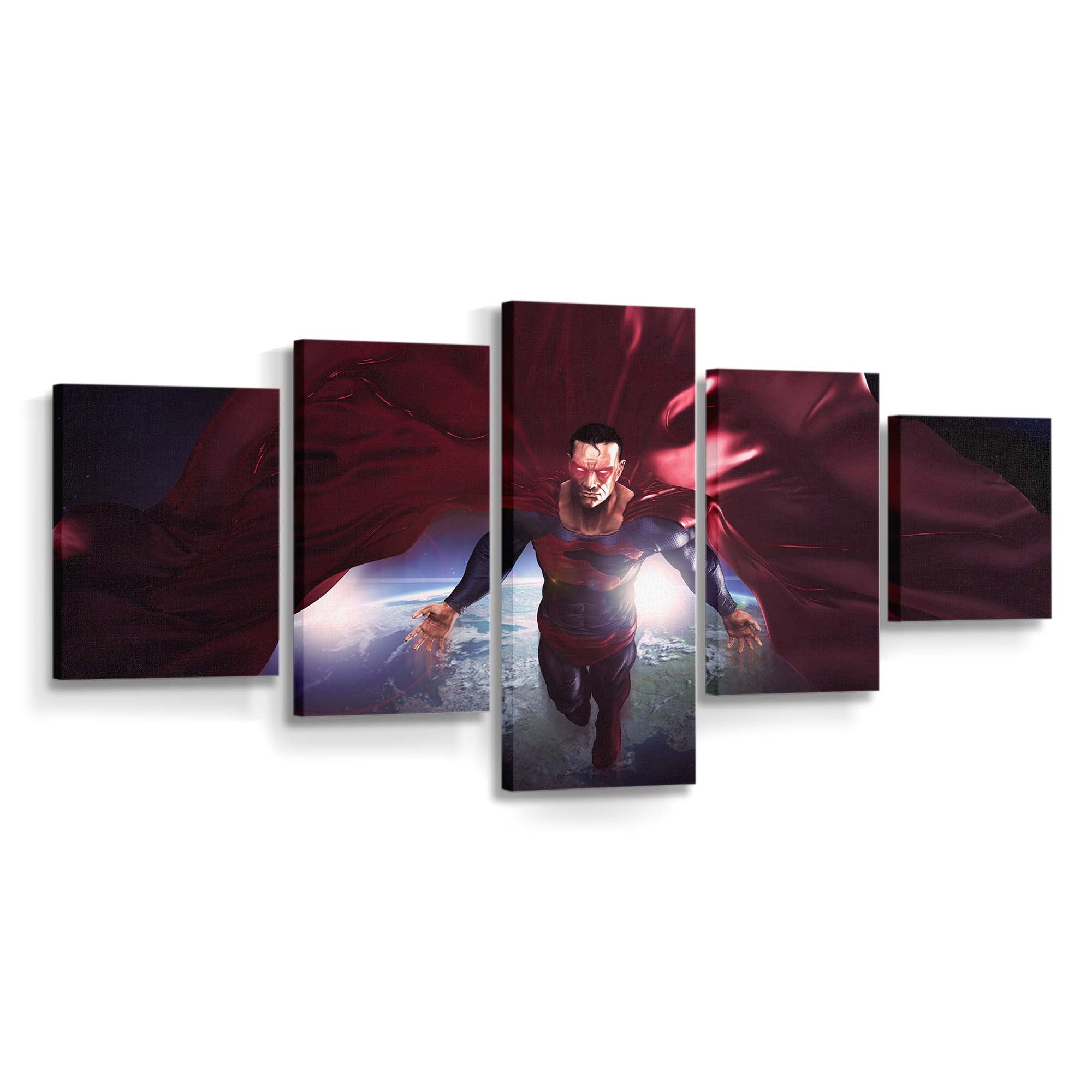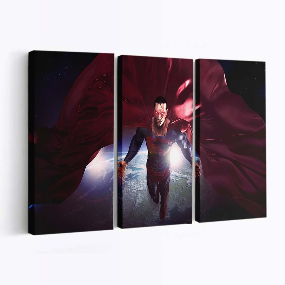 Superman In The Space Red Cape Flying Artwork Leinwandbilder | Wanddeko