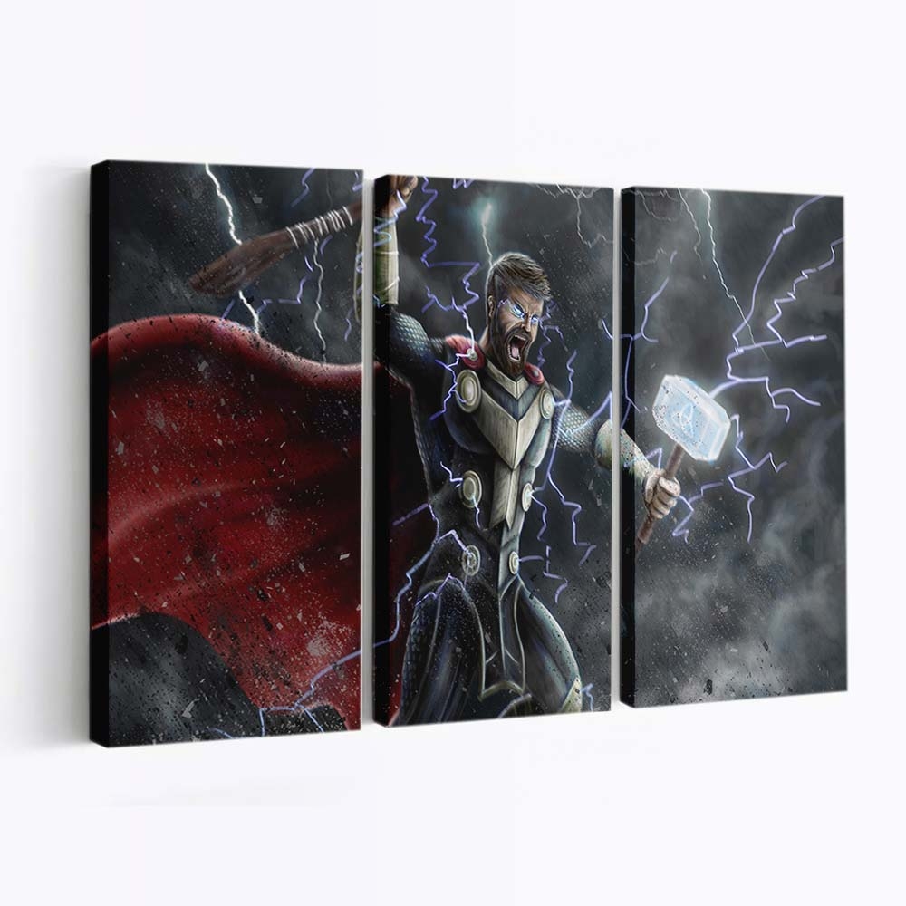 Erleben Sie die gewaltige Kraft von Thor, dem Donnergott aus dem Marvel-Universum. Dieses beeindruckende Leinwandbild bringt epische Action und die majestätische Aura Asgards direkt an Ihre Wand.