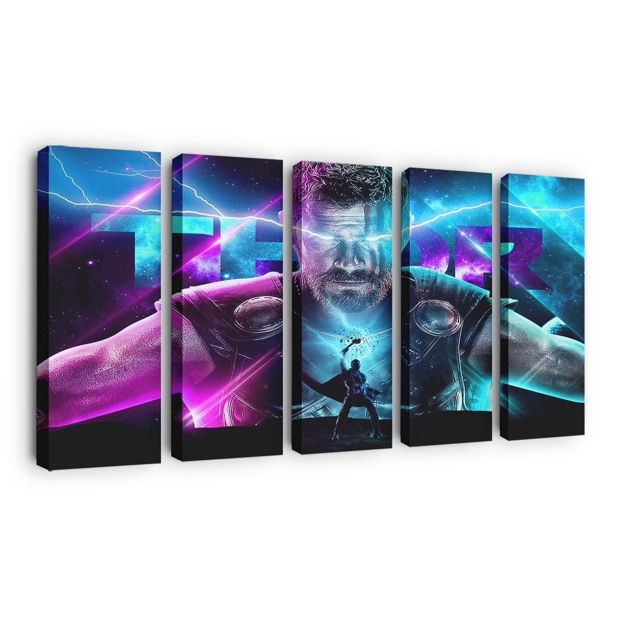 Erleben Sie die gewaltige Kraft von Thor, dem Donnergott aus dem Marvel-Universum. Dieses beeindruckende Leinwandbild bringt epische Action und die majestätische Aura Asgards direkt an Ihre Wand.