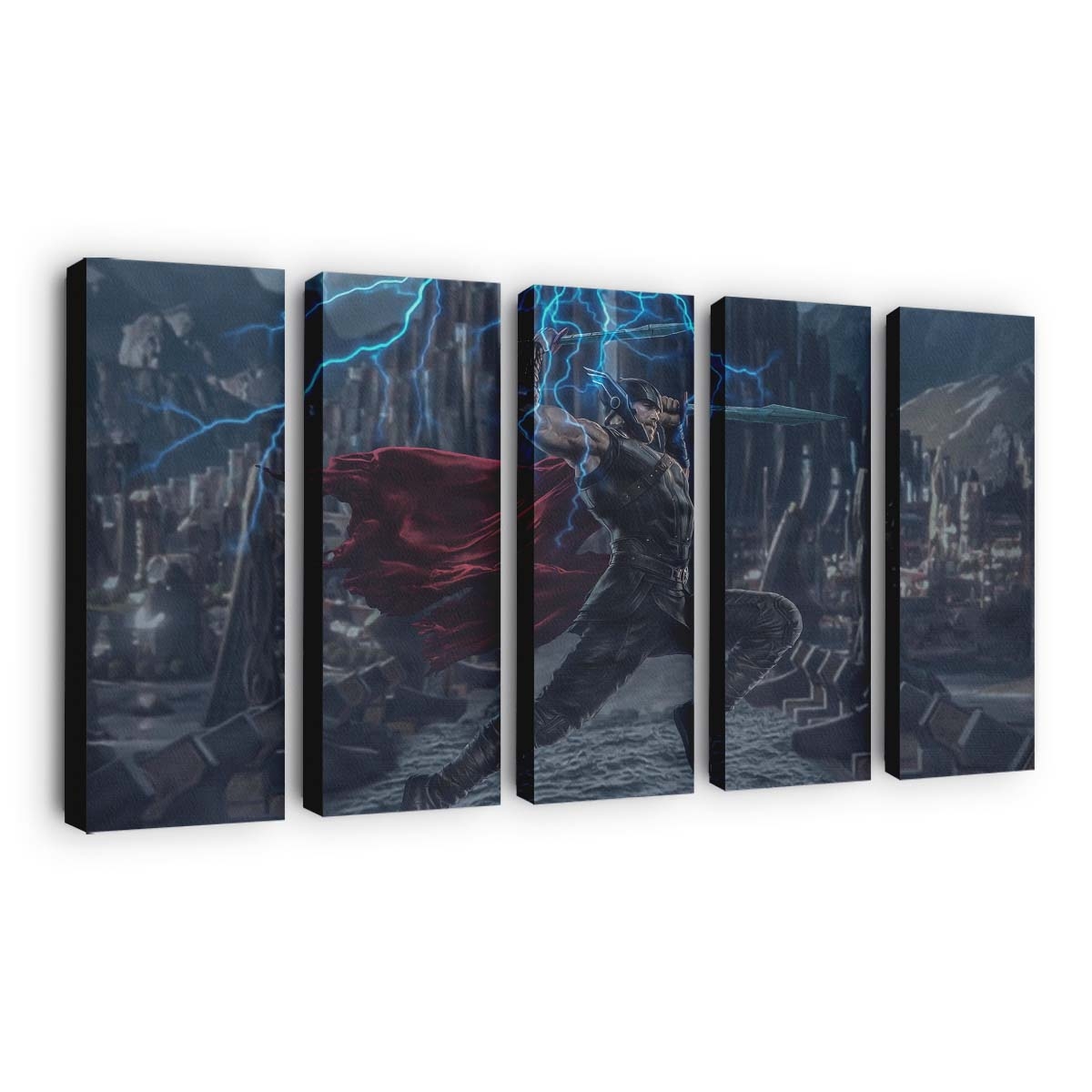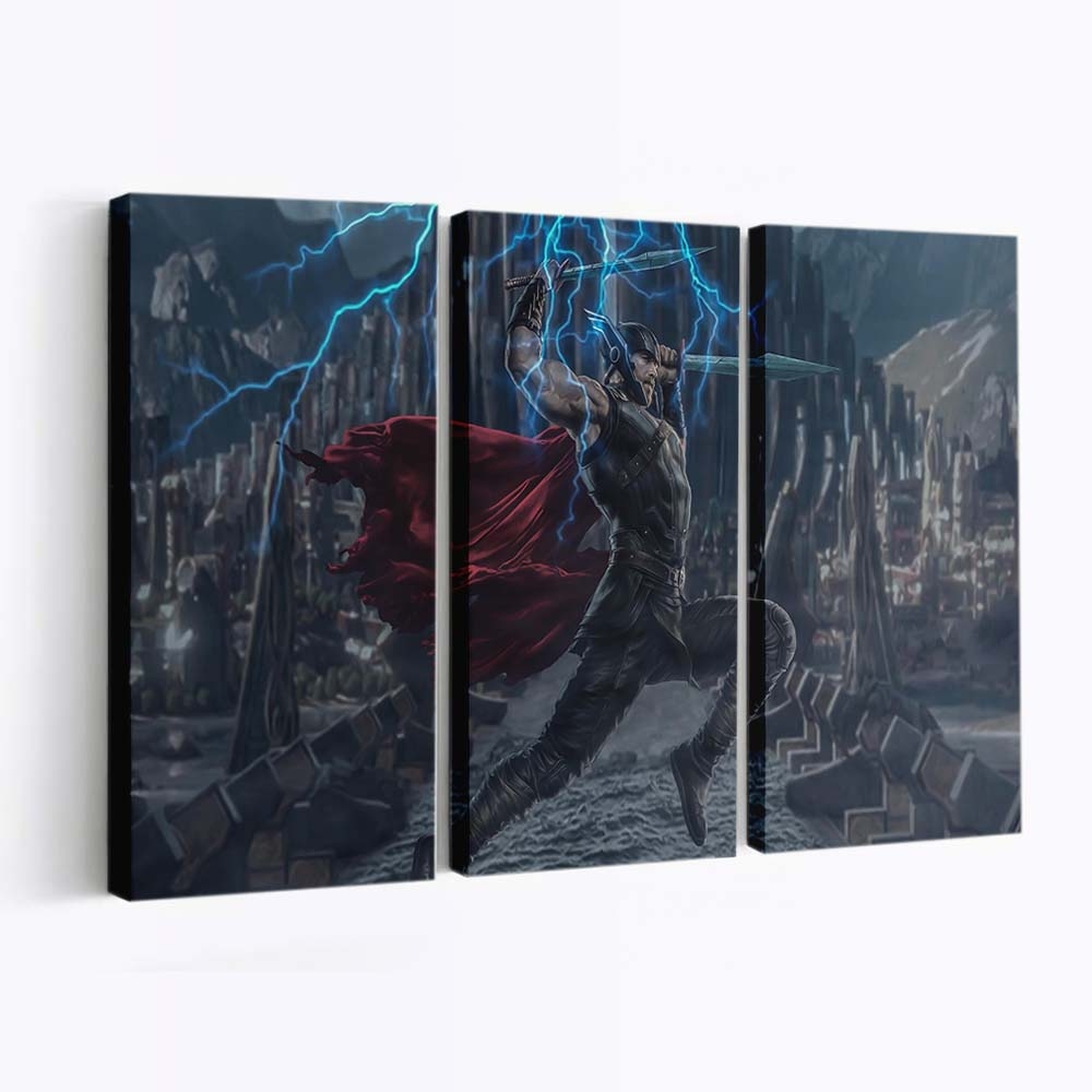 Erleben Sie die gewaltige Kraft von Thor, dem Donnergott aus dem Marvel-Universum. Dieses beeindruckende Leinwandbild bringt epische Action und die majestätische Aura Asgards direkt an Ihre Wand.