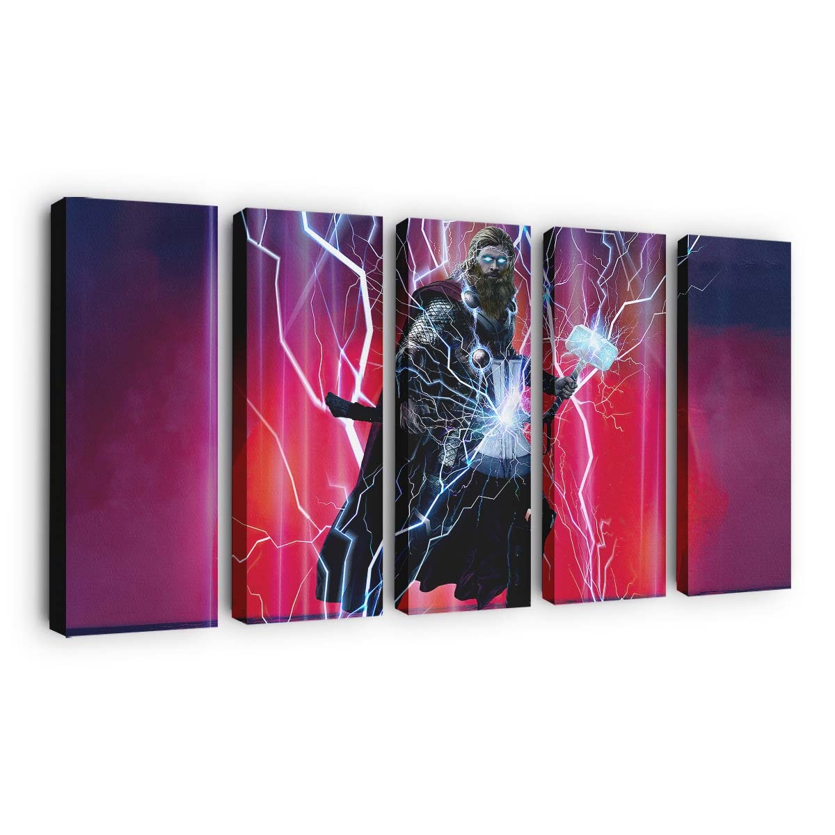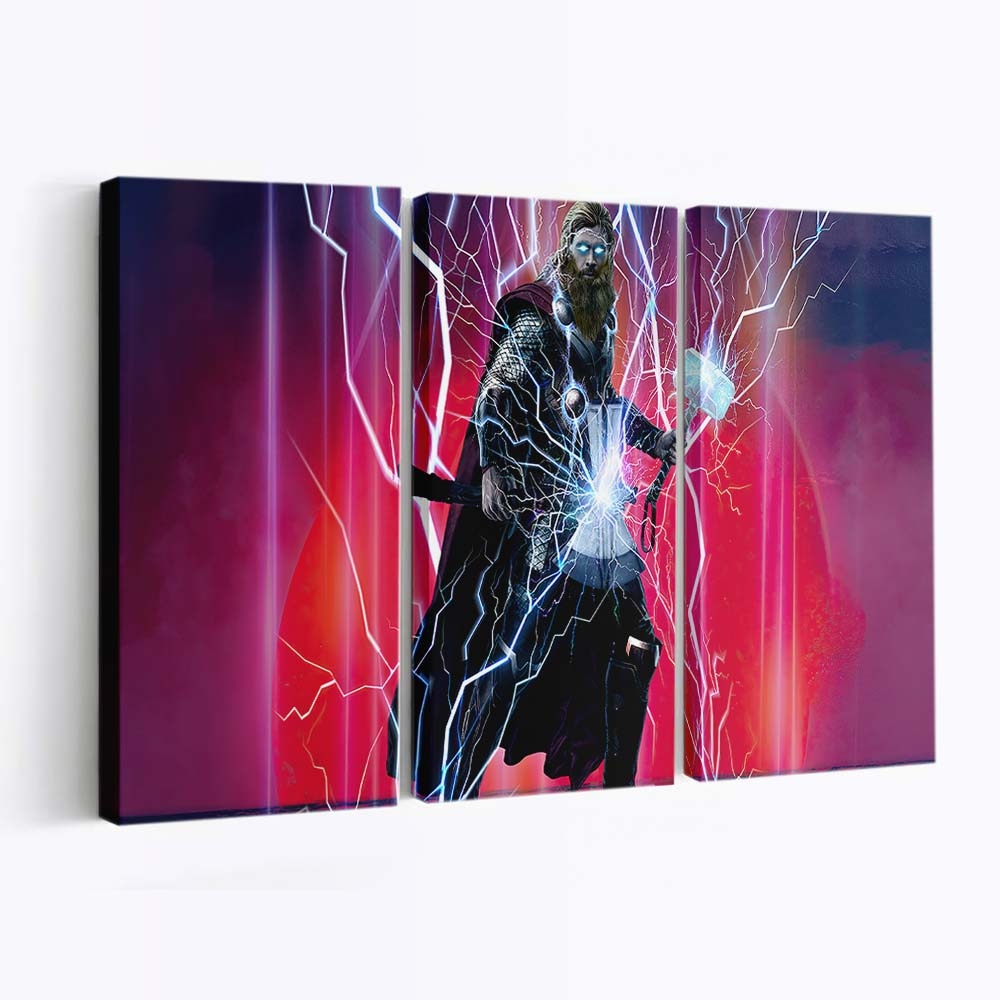 Erleben Sie die gewaltige Kraft von Thor, dem Donnergott aus dem Marvel-Universum. Dieses beeindruckende Leinwandbild bringt epische Action und die majestätische Aura Asgards direkt an Ihre Wand.
