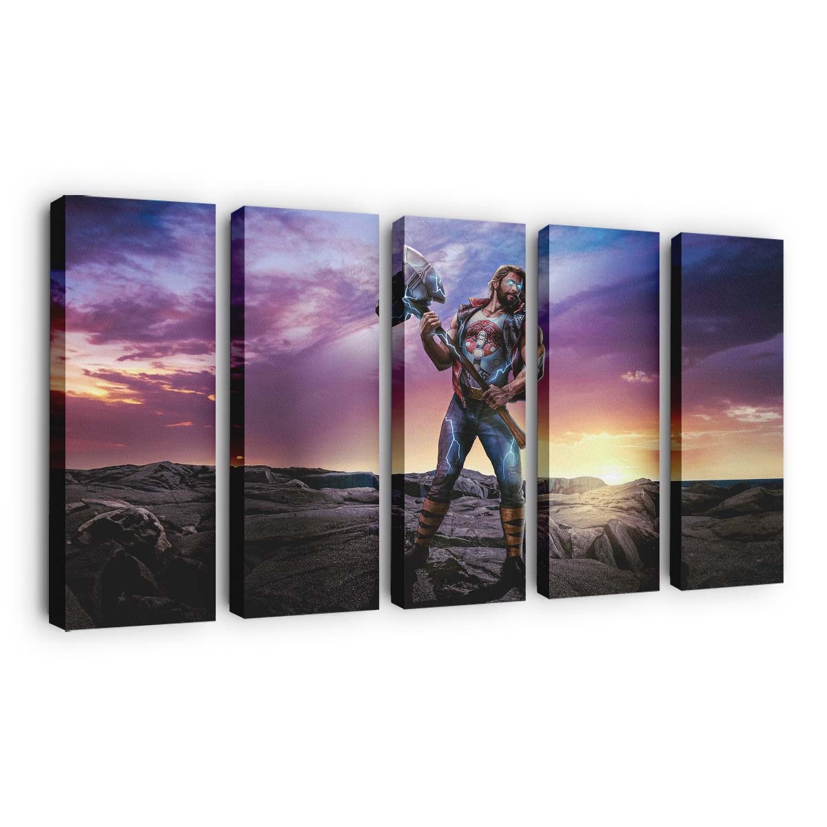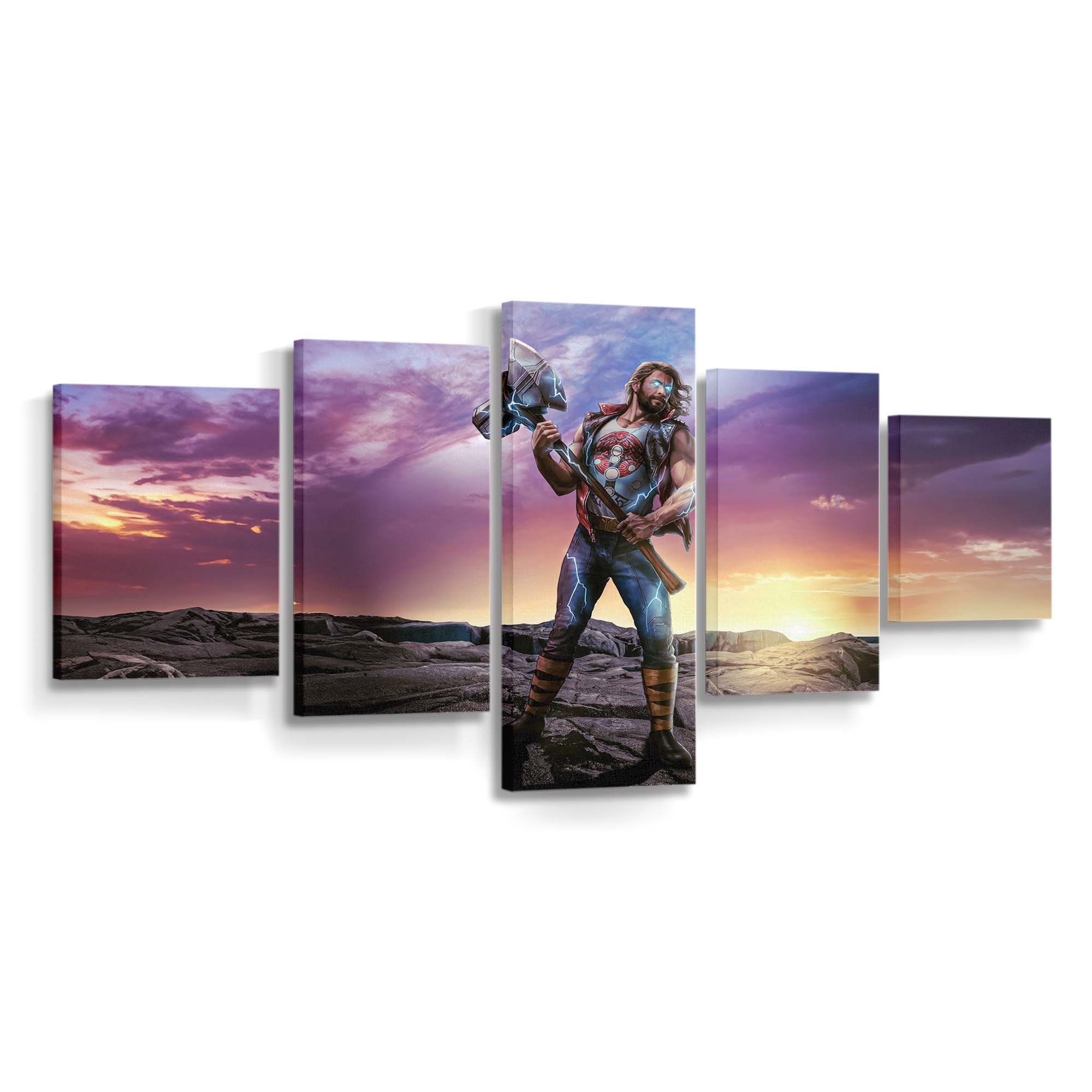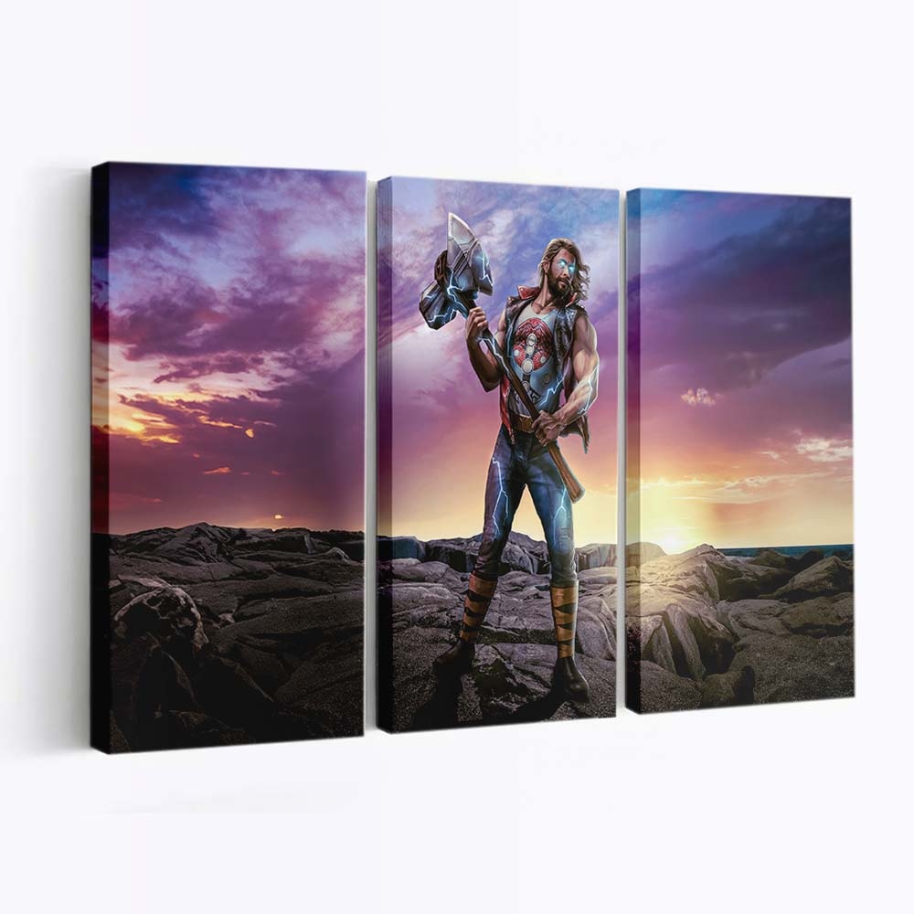 Erleben Sie die gewaltige Kraft von Thor, dem Donnergott aus dem Marvel-Universum. Dieses beeindruckende Leinwandbild bringt epische Action und die majestätische Aura Asgards direkt an Ihre Wand.