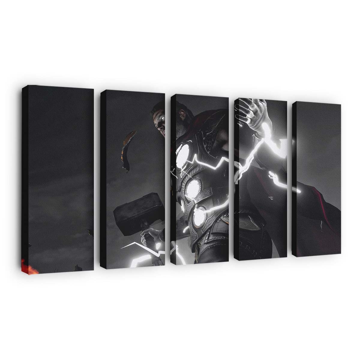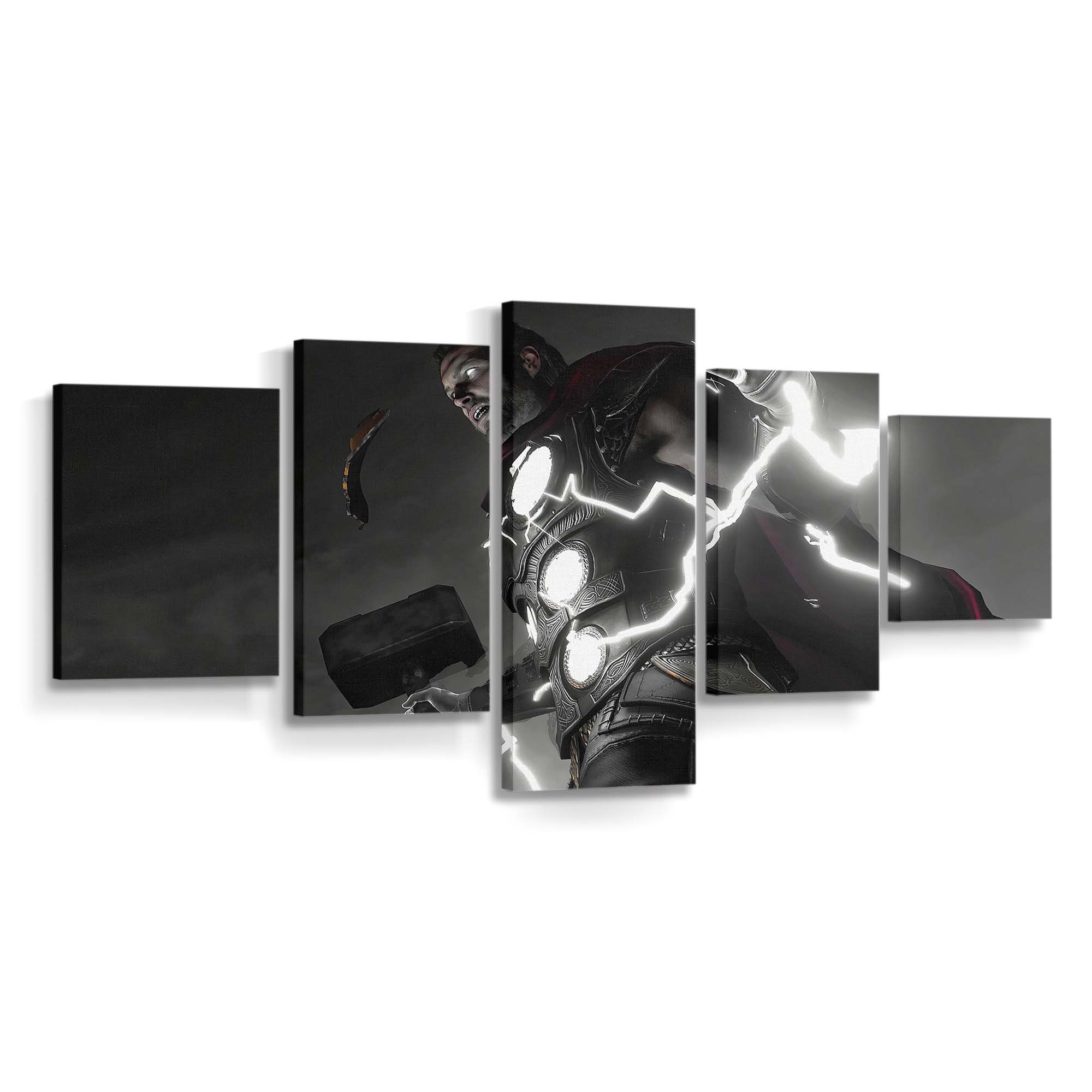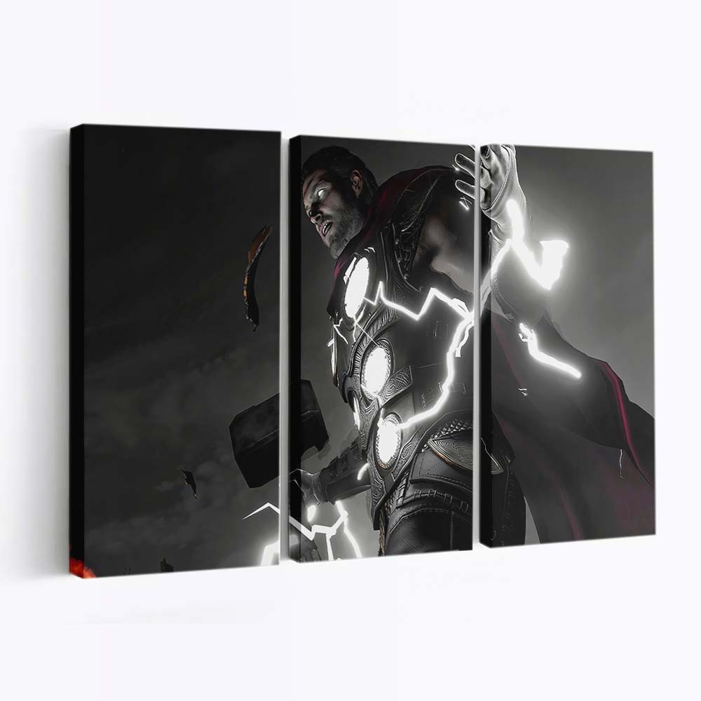 Erleben Sie die gewaltige Kraft von Thor, dem Donnergott aus dem Marvel-Universum. Dieses beeindruckende Leinwandbild bringt epische Action und die majestätische Aura Asgards direkt an Ihre Wand.
