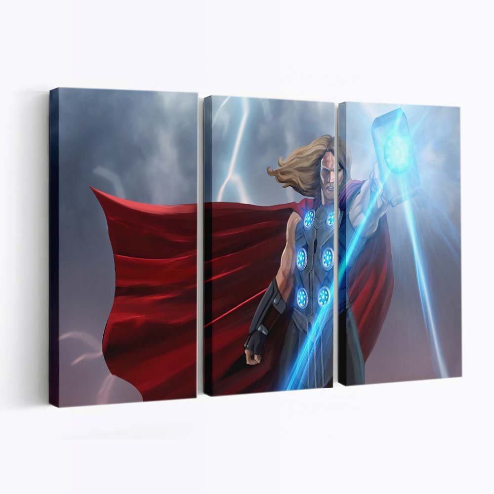 Erleben Sie die gewaltige Kraft von Thor, dem Donnergott aus dem Marvel-Universum. Dieses beeindruckende Leinwandbild bringt epische Action und die majestätische Aura Asgards direkt an Ihre Wand.