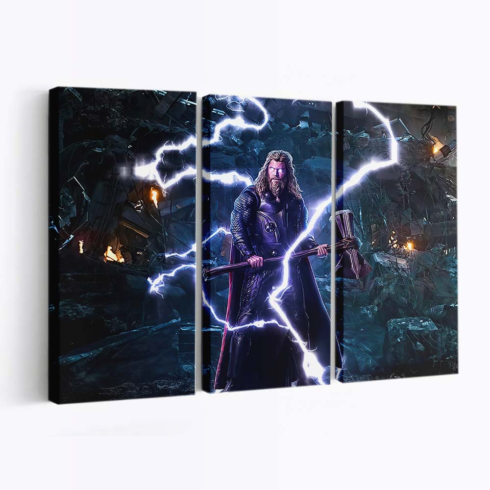 Erleben Sie die gewaltige Kraft von Thor, dem Donnergott aus dem Marvel-Universum. Dieses beeindruckende Leinwandbild bringt epische Action und die majestätische Aura Asgards direkt an Ihre Wand.